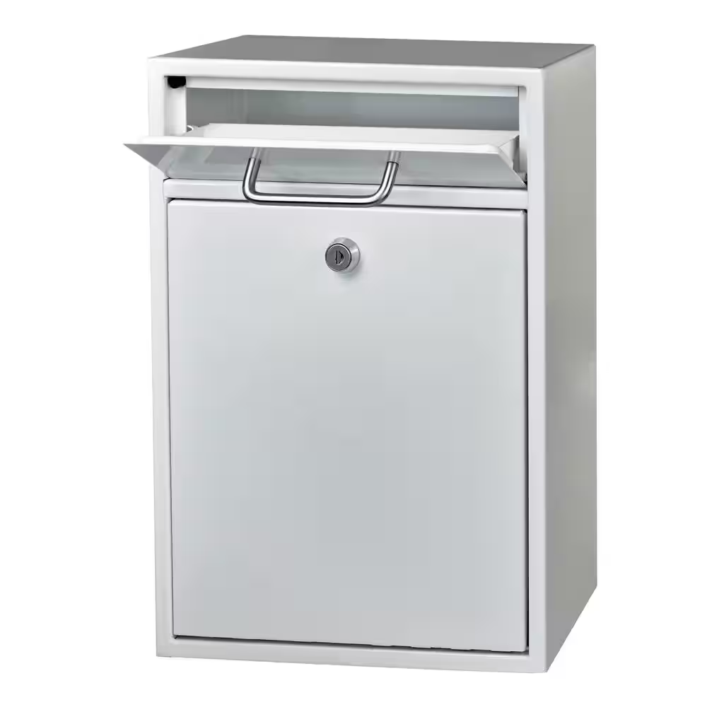 Fast Shipping On All Items 30 Days Money Guarantee Customer Support Excellent Service 100% Satisfaction Satisfaction Guaranteed Olympus Locking Wall-Mount Drop Box Mailbox with High Security Reinforced Patented Locking System, Alpine White Specification Access Type Front Only Assembly Required No Color Alpine White Color Family Whites Features Anti-Fishing,Hopper Door Hardware Color Family Metallic Hardware Finish Family Metal Included Brackets,Keys,Mounting Hardware Mailbox Capacity (cu in) 604.8 Mailbox Size Medium Mailbox Style T1 Material Galvanized Steel Mount Type Wall Mount Product Weight (lb) 13 lb Returnable 90-Day Security Locking Wall Mounting Type Flush Or Surface Mount Manufacturer Warranty Limited Lifetime US Postmaster General Approved Yes Assembled Depth (in) 4.7 in Assembled Height (in) 16.2 in Assembled Width (in) 11.2 in 11.2 inches x 4.7 inches x 16.2 inches. Weight: 13.0 lb Item Description Secures mail, money and more Patented anti-pry latch locking system for added security Durable 16 gauge galvanized steel construction The Locking Security Drop Box is designed for ease of use to secure incoming mail, money, checks, keys, ballots and more. Constructed of durable 16-Gauge steel with a commercial grade 12 disc wafer lock and a patented anti-pry latch locking mechanism. This mailbox/drop box is ideal for schools, private postal centers, corporate mail centers, restaurants, convenient stores, rental facilities, military bases, manufacturing plants and residential. About us We offer the best prices around on high quality products. Our E-store includes media such as books, movies, music and games while offering electronics, toys, sporting apparel, clothing, tools, general home, garden items and more. Shipping We are always working hard to ensure your package arrives as soon as possible. Please understand that some factors like weather, high postal traffic, and the performance of shipping companies are outside of our control. We offer free shipping to the lower 48 states and ship within 2-3 business days of payment, usually sooner. We do not accept P.O. Boxes. Please provide a physical address. For shipping outside of the continental USA, we only use eBay's Global Shipping Program.The item is shipped to KY and then sent to the rest of the world. International customers are responsible for all duties and taxes. Continue to check out to calculate costs for shipping the item to your country. Messages regarding eBay's Global Shipping Program MUST be directed at eBay EXCLUSIVELY. Returns We offer a 30-Day Return Policy on items in which you are not completely satisfied with. You have the option of a full-refund or an exchange of the item. No returns are available on items shipped outside of the USA Satisfaction We try over very best to make sure every customer is completely satisfied. If there's a problem, message us! We're happy to help. Payment Options Shop With Confidence