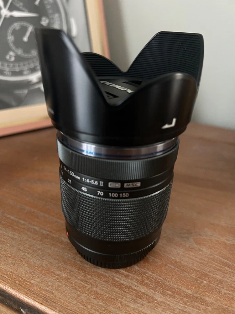 The Olympus M.Zuiko Digital ED 14-150mm F4.0-5.6 II Lens is designed for Micro Four Thirds cameras. It has a maximum aperture range of f/4.0-5.6, offering a versatile zoom focal length of 14-150mm. This telephoto lens features autofocus and is in like-new condition (missing original packaging). The lens is part of the Olympus M. Zuiko series and is in black color. Lens is in perfect condition.
