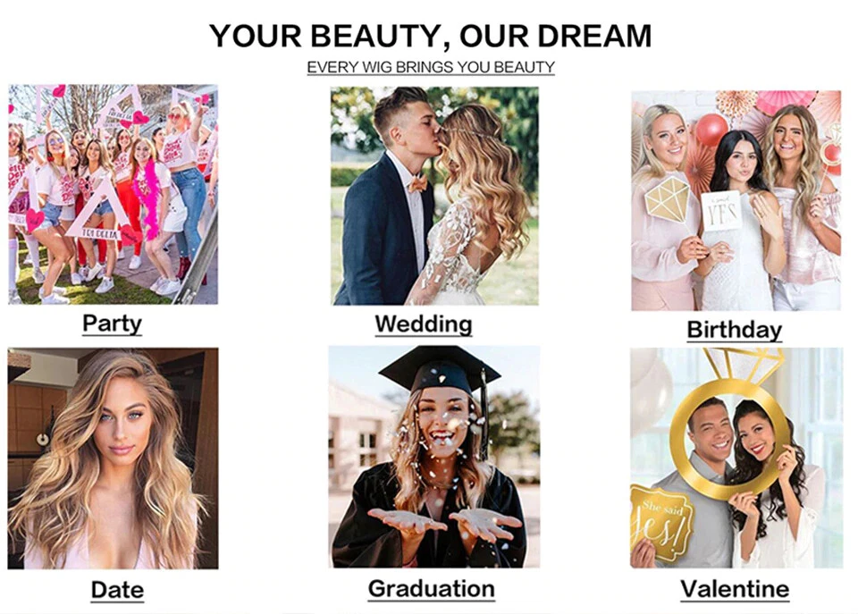 if you want more detailed pictures, Please feel free to contact us if any questions, will get reply within 24 hours You Will Get One Premium Synthetic Wig + 1 Pc Free Wig Cap Features Hair Type: 100% High Quality Synthetic Wigs, Imported premium soft Kanekalon synthetic fiber from Japanese, Heat Resistant Fiber up to 180 Degrees Centigrade. Hair Density : About 150%-180% Average Density. Cap Style: High elastic, skin-friendly, environmentally friendly Net cap, Resizable for various head types. Manufacturing method: machine manufacturing All Synthetic Wigs will Shed Hairs Slightly When you Wear it for the First Time, Which is Normal. How to avoid tangle and shedding 1. Do not comb the wigs vigorously. 2. Do not comb the wigs when it wet. 3. Do not washing the wig with extremely hot water. How to Apply Synthetic Wigs 1. Pin up your hair and put on a wig cap,use a wig cap on any type of hair length to hold it all in and ensure a smooth fit. 2. You can adjust the hooks in the hat to suit you. 3. Don't worry if it doesn't look prefect right away,go ahead and style/brush it into place the way you'd like it to look. Hair Care Tips 1. Place it naturally 2. Our wigs are sterilized,washed,very clean,there is no need to wash it in 1-2 months,just add some water in a sprayer then spritz it on the wig and natural drying it. 3. Detangle Gently remove tangles with a wig brush or comb,working gradually from the ends to the base of the hair. 4. Dry Gently press with a towel to remove excess water,place on a folding wig stand and allow to air dry. FAQ: Q:How do i properly store when not in use for long periods? -A: It's better that you can store your on wig stand or mannequin. Q:Does this fit everyone? -A: It can fit most of people.It has two straps that you can adjust to make it fit better. Q:Can it be dyed? -A:It is synthetic wig and can be dyed. Q:Can this wig be straightened or curled ? -A:Yes.The temperature should be under 350 Fahrenheit. Q:Does it come with wig cap -A: Yes,FREE CAP AS GIFT Q:Will the color fade if you wash it? -A:No. I have washed mine a few times and it still looks the same.