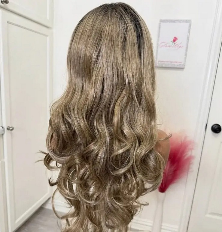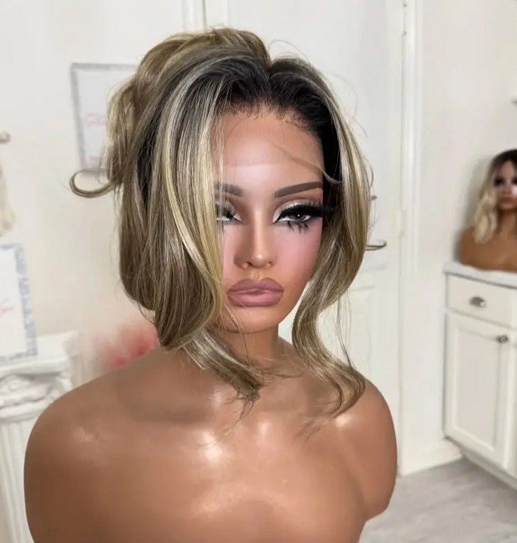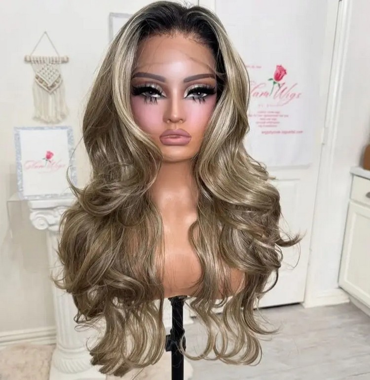 Ash Blonde Highlight Wave 100% Human Hair Wig 13x4 Lace Front Wig
