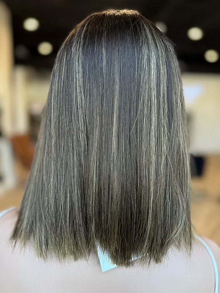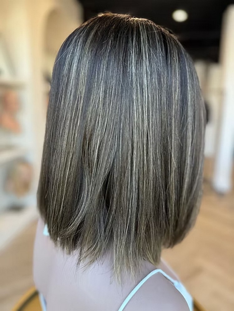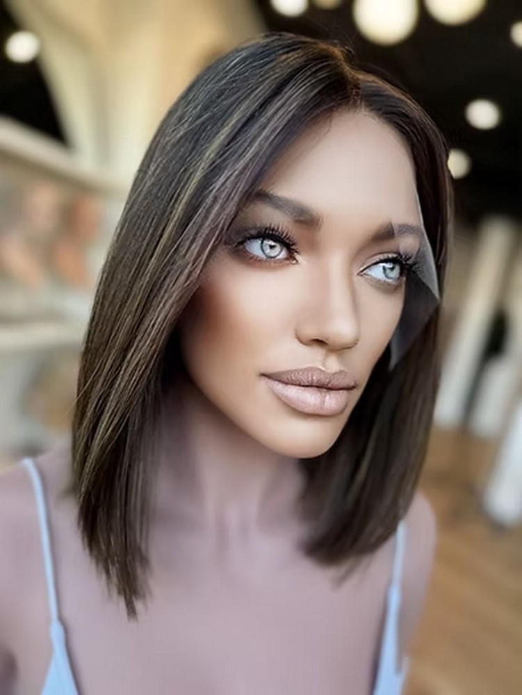 Ombre Brown Highlights Balayage Lace Front Wig Short Straight Bob Human Hair Wig