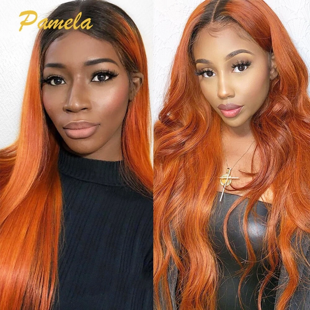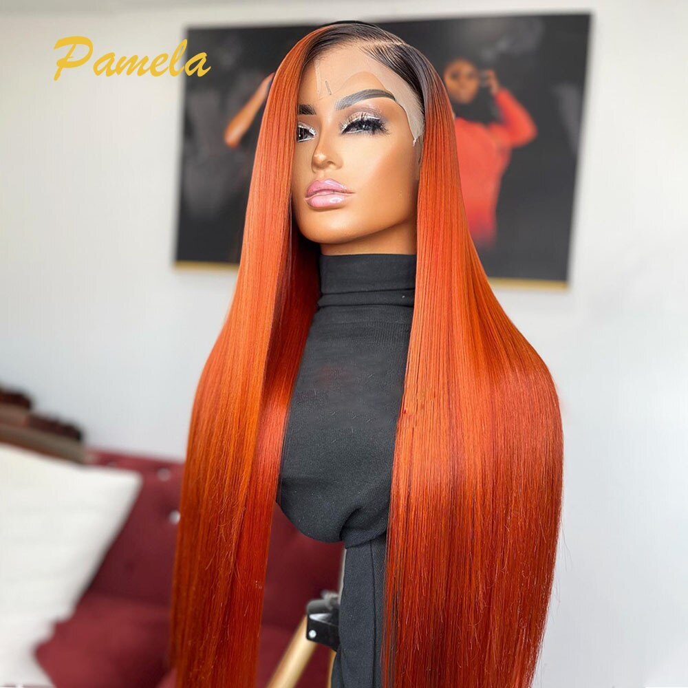 Ombre Ginger Orange Straight Brazilian Lace Front Human Hair Wig for Women