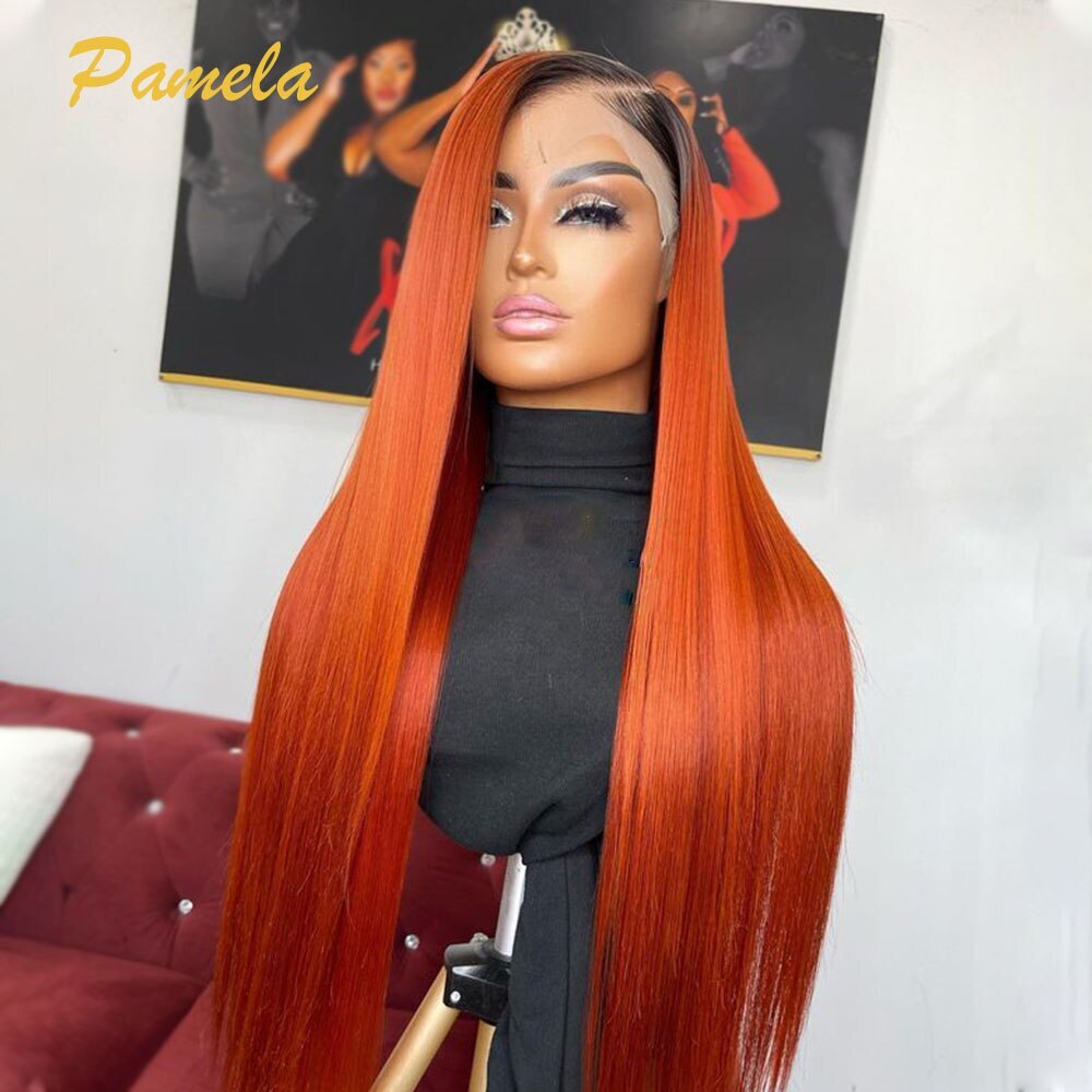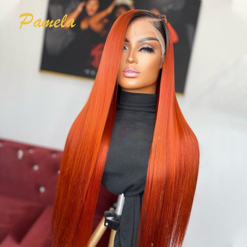 HomeOmbre Ginger Orange Straight Brazilian Lace Front Human Hair Wig for Women