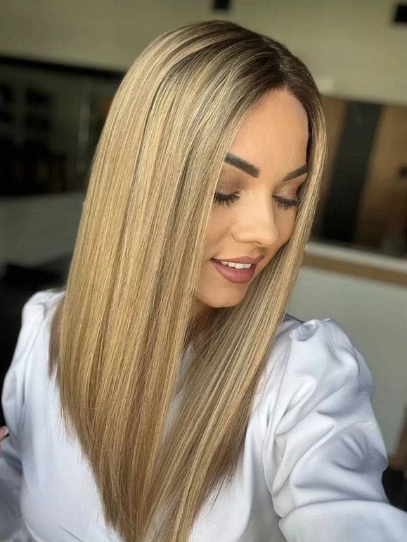 Ombre Golden Blonde Brown Straight 13x4 Lace Front Wigs 100% Human Hair Wig