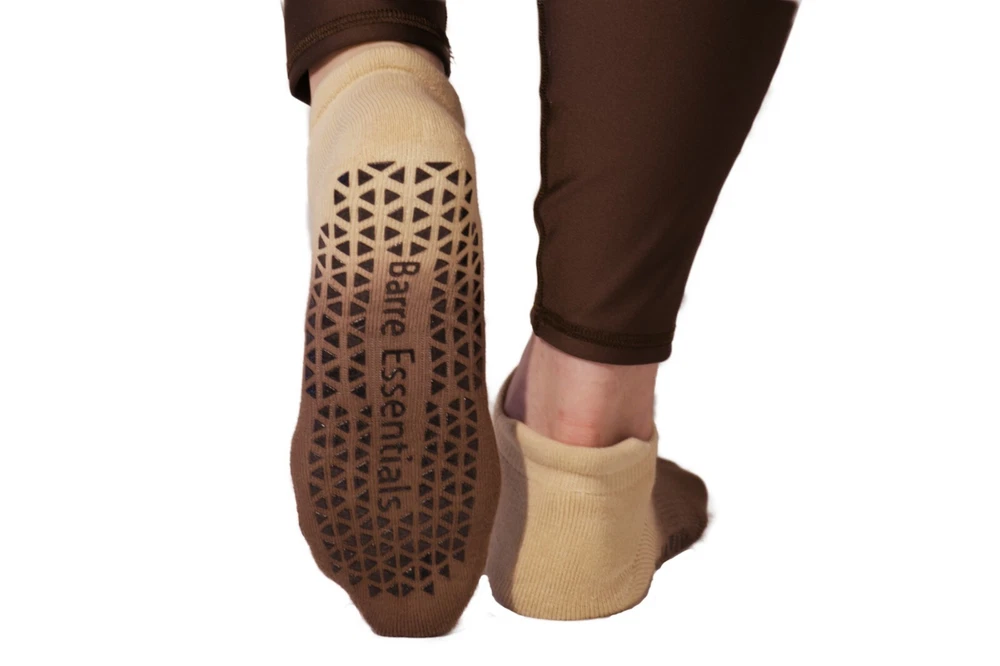 Classic Brown Low Rise Grip Socks for Women - Non Slip Socks - Perfect for Yoga.