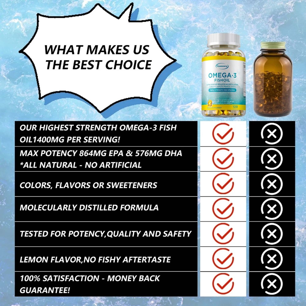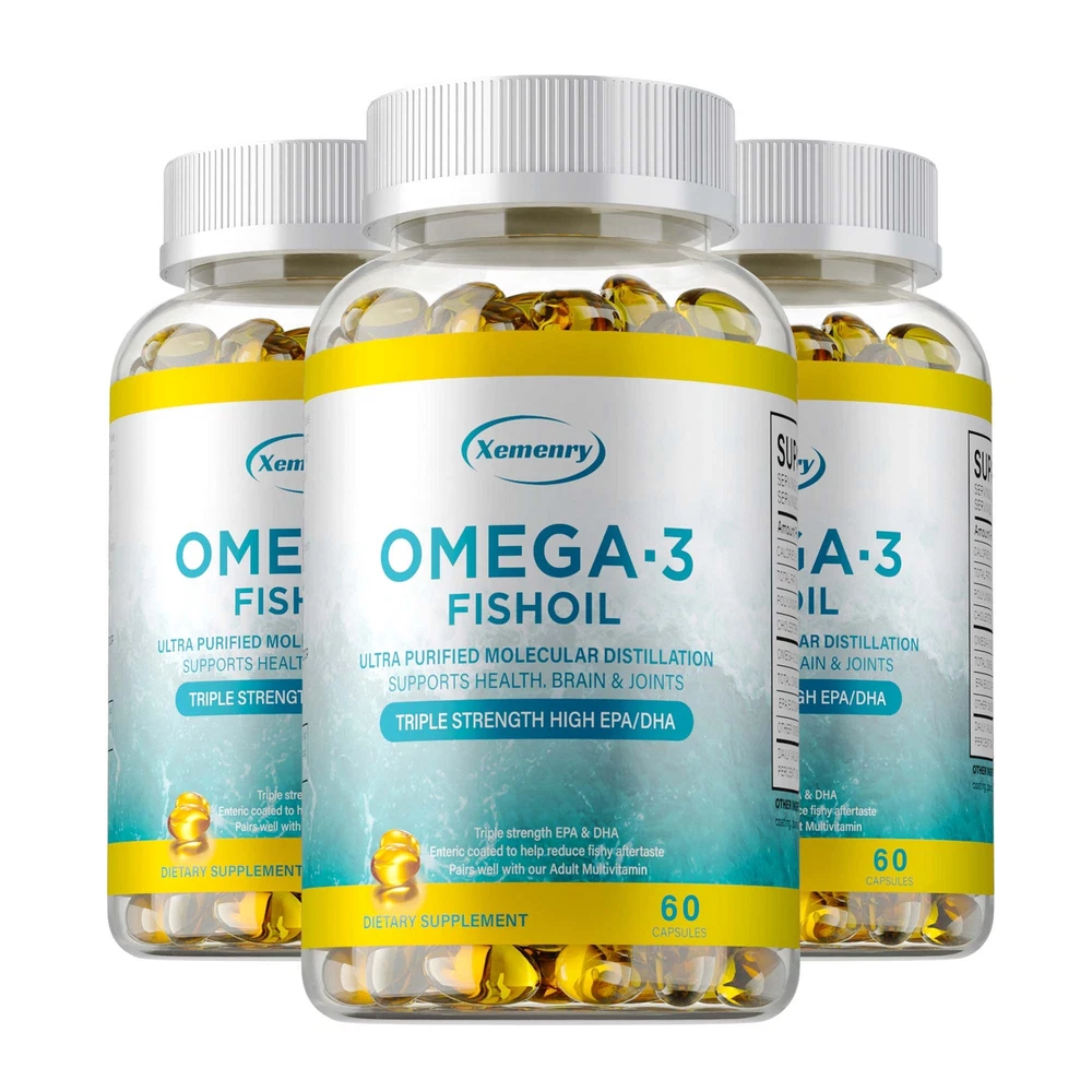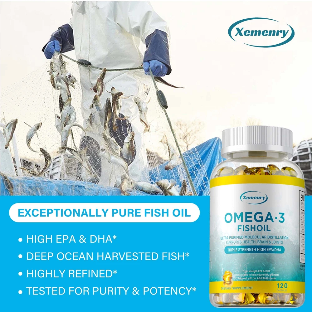 Storage: Keep in a cool, dry place and please sealing Number of Pills: 30/60/120 Capsules Country/Region of Manufacture: Unknown Main Purpose: Brain & Nervous System Health, Heart Health, Bone Health MPN: DZ221 Brand: xemenry Active Ingredients: Omega 3 Fish Oil, DHA, EPA Formulation: Capsule Expiration Date: 01/2027 Features: All Natural, Easy to Swallow, Eco-Friendly Shelf Life: 2 years Department: Men, Unisex, Women Ingredients: Omega 3 Fish Oil, DHA, EPA Flavor: Unflavored When to Take: After Meal FDA Registration Number: 10506864922 Item Weight: 40/65/100g Production Date: 01/2025 Type: Vitamin