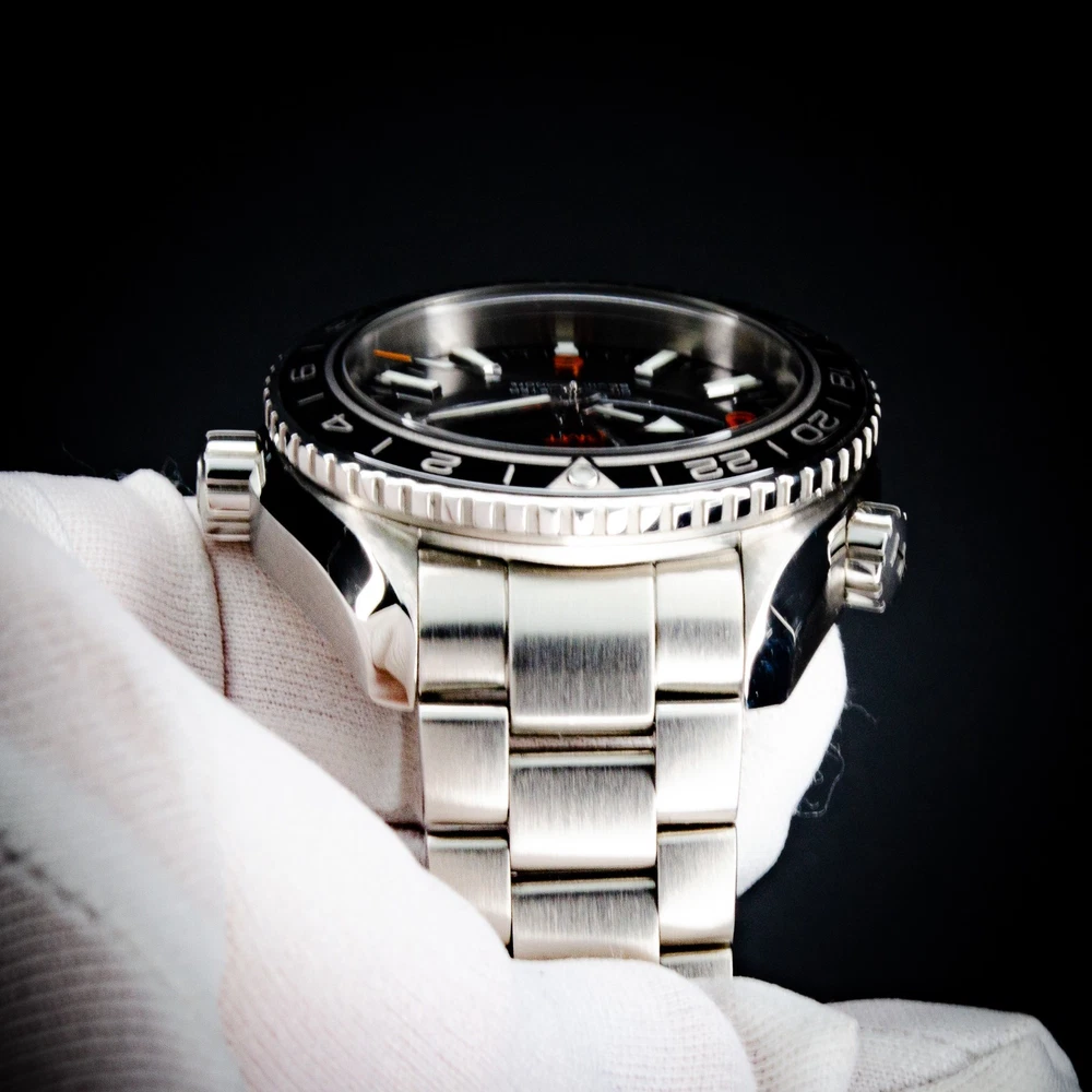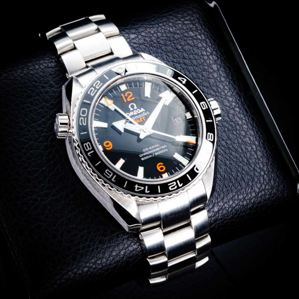For sale is an Omega Seamaster Planet Ocean 232.30.44.22.01.002, a 43.5mm GMT dive watch in excellent condition (9.3/10). What's Included ✅ Original Omega inner and outer boxes ✅ Warranty card (dated 2015) ✅ Complete manuals and documentation Specifications Case Size : 43.5mm stainless steel with scratch-resistant sapphire crystal Movement : Omega Co-Axial Calibre 8605, automatic chronometer with GMT function Power Reserve : 60 hours Water Resistance : 600m (2000 feet) Bezel : Polished black ceramic bi-directional with 24-hour GMT scale Strap : Stainless steel bracelet with patented extendable foldover clasp Dial : Lacquered black with Arabic numerals, trapezoidal hour markers, and Super-LumiNova 💯 100% authentic — buy with confidence 📦 Fast, insured shipping from Dallas, TX. 📲 Contact us for a video walk-through or additional details.