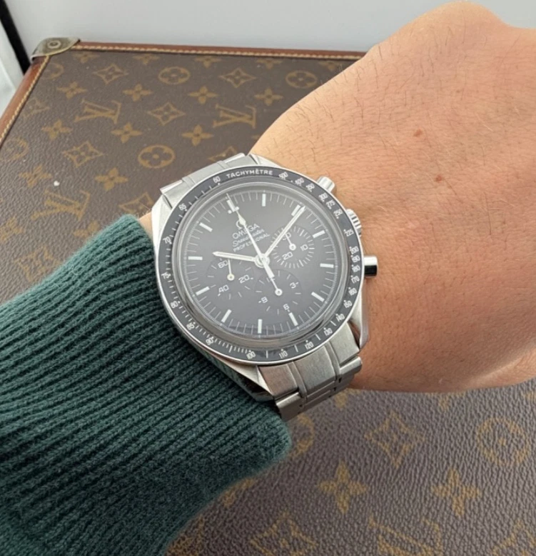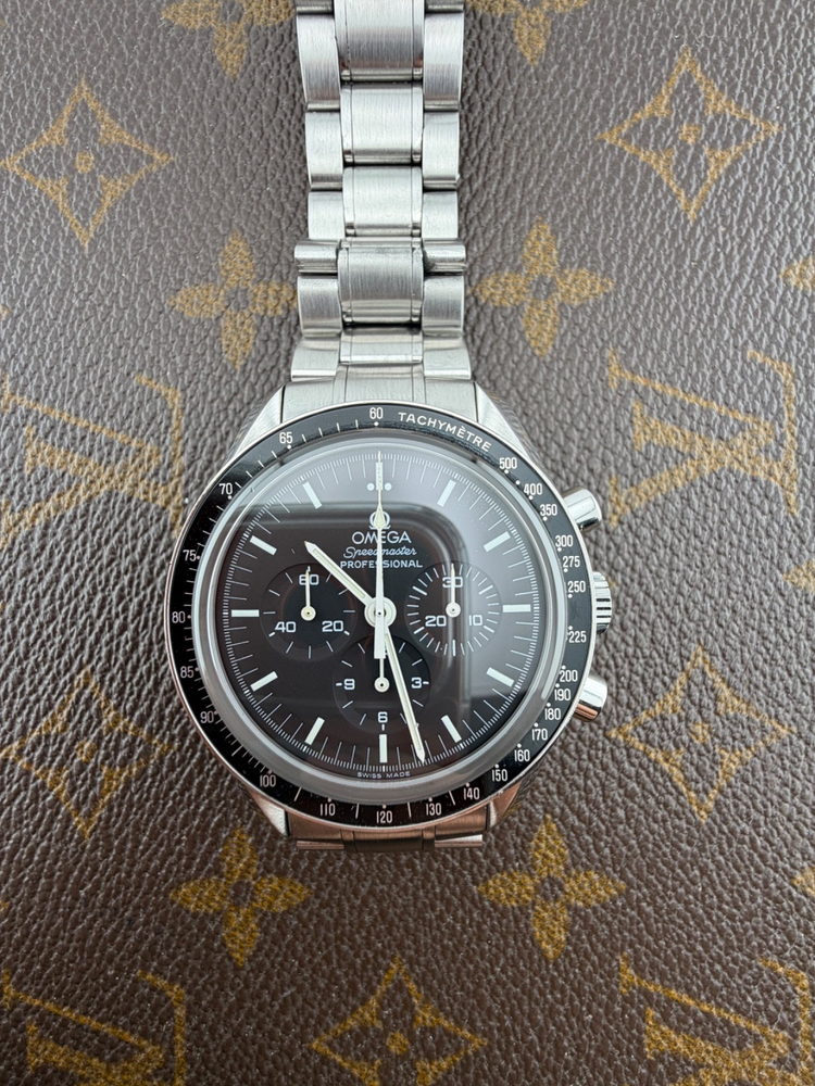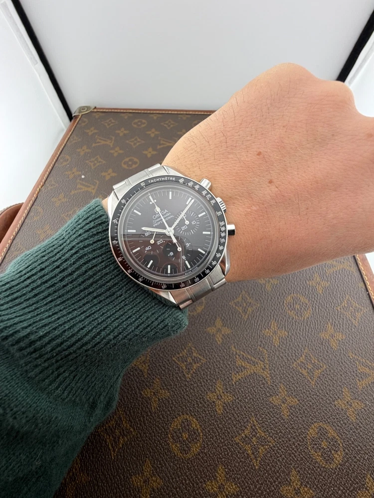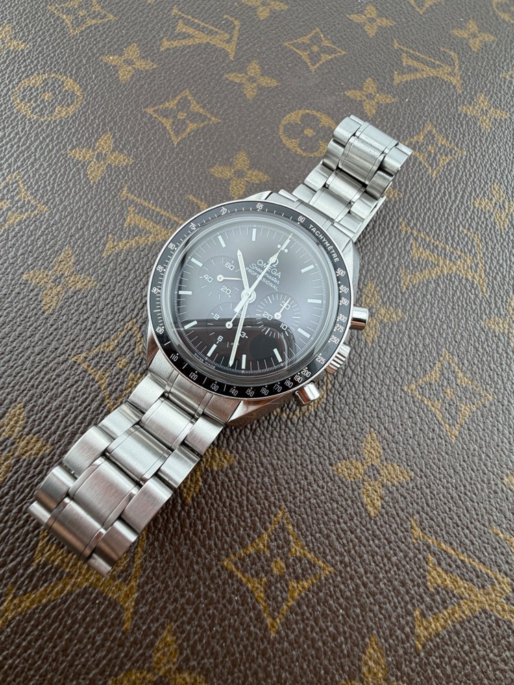 PROPONIAMO; -Marca: OMEGA SPEEDMASTER -Cassa: ACCIAIO INOX DA 42MM , FONDELLO A VITE CON VETRO ZAFFIRO -Movimento :ORIGINALE OMEGA CALIBRO 1873 -Vetro:ZAFFIRO -Corona:ORIGINALE -Ghiera: FISSA CON INSERTO IN ALLUMINIO -Tasti: POMPA ORIGINALI -Quadrante: NERO -Lancette: ORIGINALE -Cinturino/Bracciale: BRACCIALE ORIGINALE CON FINALI 849 , CLASP 1998/849 ADATTO A POLSI FINO A 20 CM -Scatola e documenti: NOSTRA BOX VIAGGIO (CON GARANZIA CARD 1 ANNO)+ BOX ORIGINALE OMEGA IN FOTO -Condizioni : OTTIME -Revisionato:SI -Uomo/donna/unisex:UOMO PER QUALSIASI DUBBIO CONTATTATEMI ,RISPONDEREMO IL PRIMA POSSIBILE Perché sceglierci per i vostri acquisti?? Perché offriamo orologi autentici, valutazioni trasparenti e competenza professionale maturata dal 2018. Ogni acquisto è garantito da controlli accurati, serietà e passione per l’orologeria di valore. RAGUSA RICCARDO