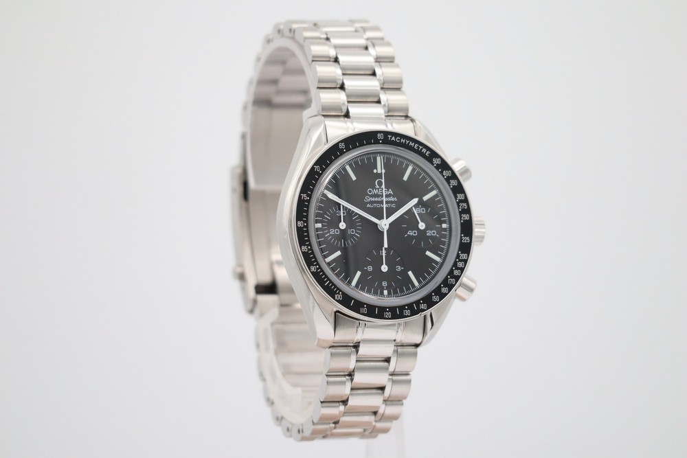 This Omega Speedmaster Reduced is a stunning timepiece—sleek 39mm size fits perfectly, and the automatic movement keeps precise time. Comes with papers and box, adding great value. The design is classic yet modern, making it versatile for any occasion. Excellent condition, feels luxurious on the wrist. Highly recommended for watch enthusiasts!