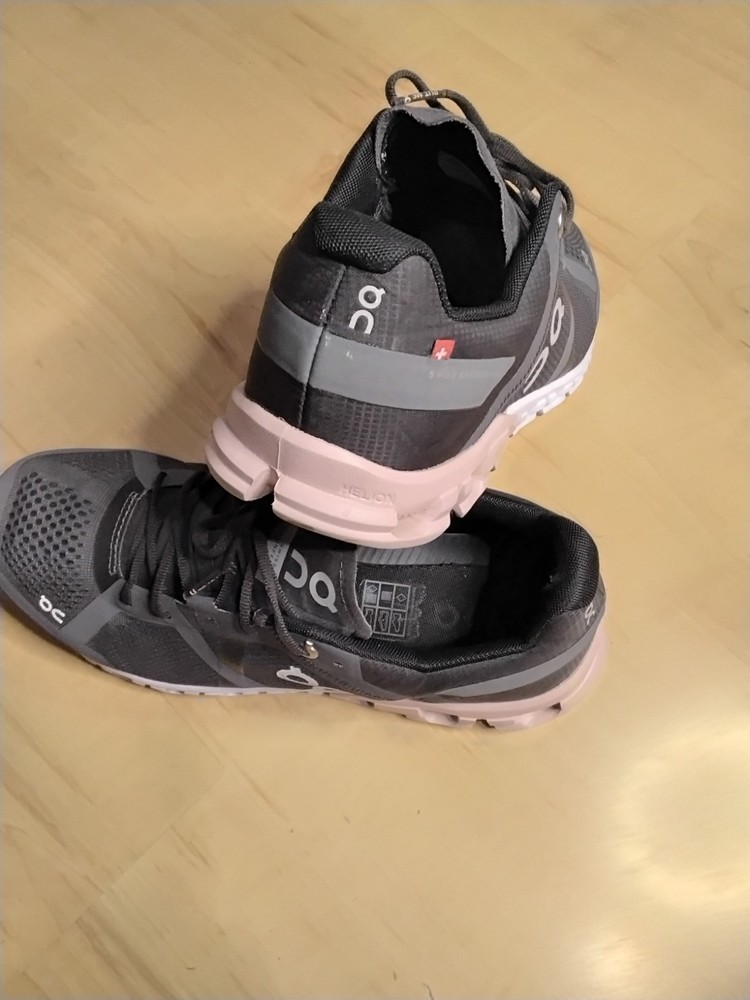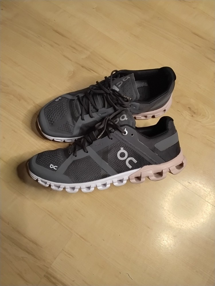 The On Cloud Cloudflow Women's Running Shoes in dark gray are designed for athletic women who value both style and performance. Featuring a breathable mesh upper material, these sneakers offer a comfortable fit for running or everyday wear. The rock/rose color scheme adds a modern touch to the overall design, making them a versatile choice for active women on the go. The On brand is known for quality footwear, and these shoes live up to that reputation with their sleek design and functional features.