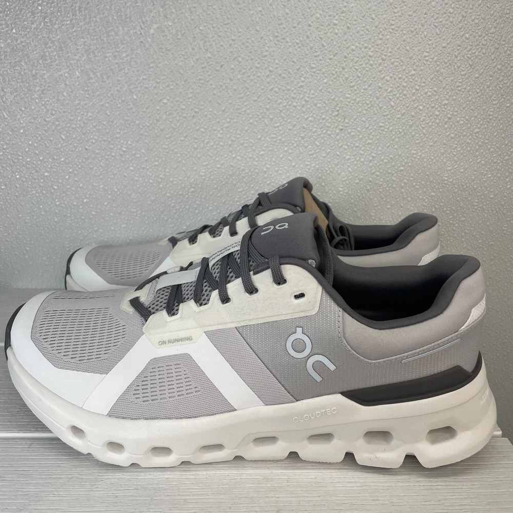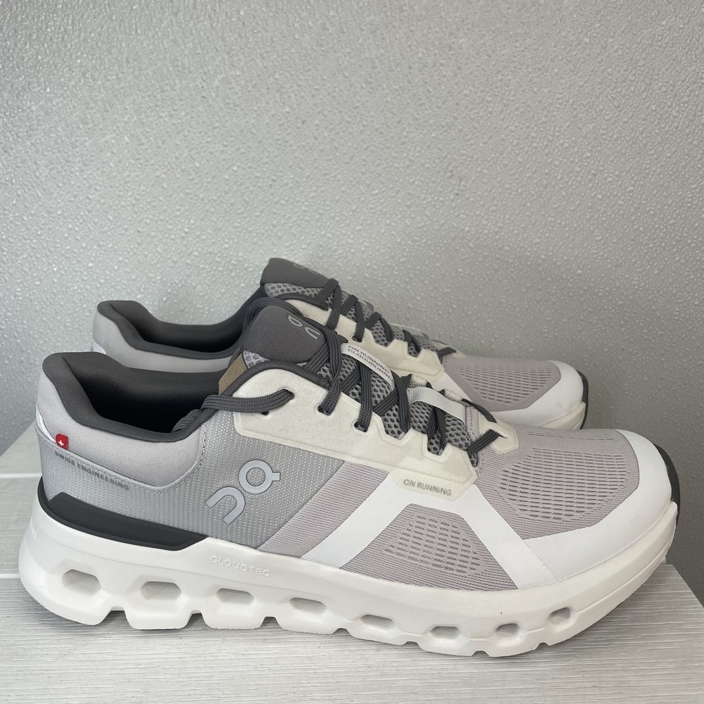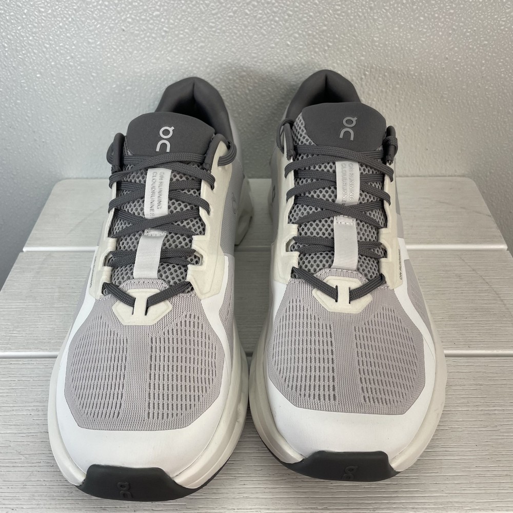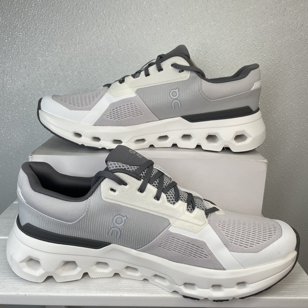On Mens Size 11.5 Cloud runner 2 Athletic Running Sneaker White Grey Lace Up