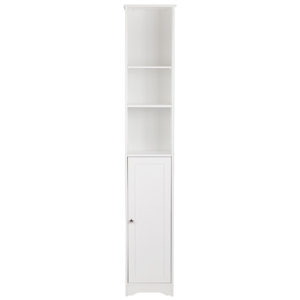 Introductions: This is a simple and modern style wall-mounted standing bathroom cabinet. Adopting high quality and hard MDF sheet, it is waterproof and moisture-proof. One door and five-layer design maximizes the storage space and can help you classify your items better. You can put a variety of toiletries, cosmetics, and other sundries. In addition, it features anti-dumping device to further ensure the safety of use. This bathroom cabinet is not only used as bathroom cabinet, but also can be used as side cabinet and bedside table. In addition to the bathroom, you can also put it in the bedroom and living room to meet your diverse home design needs. Features: 1. Made of high quality and hard MDF sheet 2. Chrome handle 3. One door and five layers 4. Anti-dumping device 5. Waterproof and moisture-proof 6. High quality 7. Easy to assemble Specifications: 1. Brand: FCH 2. Material: MDF 3. Color: White 4. Dimensions: (11.81 x 9.45 x 66.93)" / (30 x 24 x 170)cm (L x W x H) 5. Storage Room Dimensions: The First/The Second Layer: (10.12 x 9.45 x 9.25-14.57)" / (25.7 x 24 x 23.5-37)cm (L x W x H) The Second Layer: (10.12 x 9.45 x 10.43)" / (25.7 x 24 x 26.5)cm (L x W x H) 6. Door Dimensions: (10.12 x 29.33)" / (25.7 x 74.5)cm (L x W) 7. Weight: 21.16 lbs / 9.6kg Package Includes: 1 x Bathroom Cabinet 1 x User's Manual 1 x Accessories Package