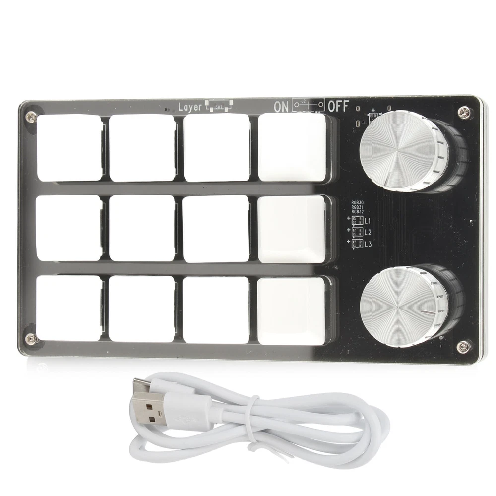 Feature: 1. Bring You Convenience: This is a 12 key programmable keyboard with adjustment knob, you can set the shortcut keys to reduce the cumbersome process. 2. Multifunction: The mini keyboard with multi functions, you can set all the key functions on the for Windows keyboard, and realize complicated and complex shortcut keys with one key. 3. Memory Function: The keyboard has a storage function, which can be used on systems that support usb protocol such as for Linux, for OS X, etc. after setting it up on the for Windows system. 4. Settable Knob: The knob can also be set, with functions such as, play the previous song, the next song, volume up, volume down, pause, play and other functions. 5. Portable and Easy to Use: Type C to USB interface, no need for drivers, plug and play, no conflict between the computer and multiple keyboards, convenient and easy to carry. 6. Wide Application: Programmable keyboard is suitable for office, game, music, media, industrial control, laboratory, production line testing and other fields Specification: Item Type: Macro Mechanical Keyboard Material: Acrylic, PCB Usage: Suitable for office, games, music, media, industrial control, laboratory, production line testing and other fields System Support: For Windows, for VISTA, for Linux, for OS X Button Life: Up to 50 Million Times Type: Dustproof Green Shaft Quantity of Keys: 12 Keys Size: Approx. 132 x 77 x 38mm / 5.2 x 3 x 1.5in (L x W x H) Current and Voltage: DC 5V/1A Working Temperature: -10℃-50℃ Package List: 1 x Keyboard 1 x USB Cable Note: This software can only be run on for Windows system temporarily, try to download it on the PC side of the computer, the setting software does not need to be installed, it can be run directly after opening it, and it will be automatically stored on the chain disk after setting, and then plug it into the USB protocol that supports the USB protocol. Use on for Linux, for OS X and other systems (the first time you run it, pay attention to the release of antivirus software and set it as a trusted file)!