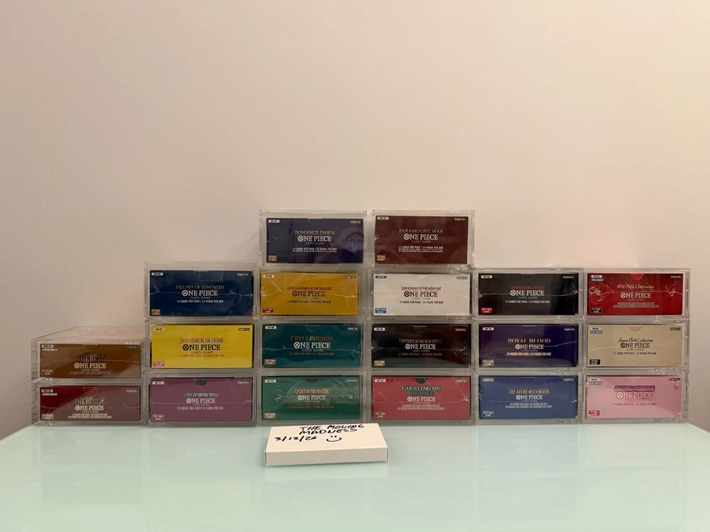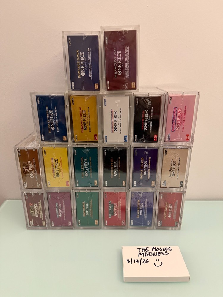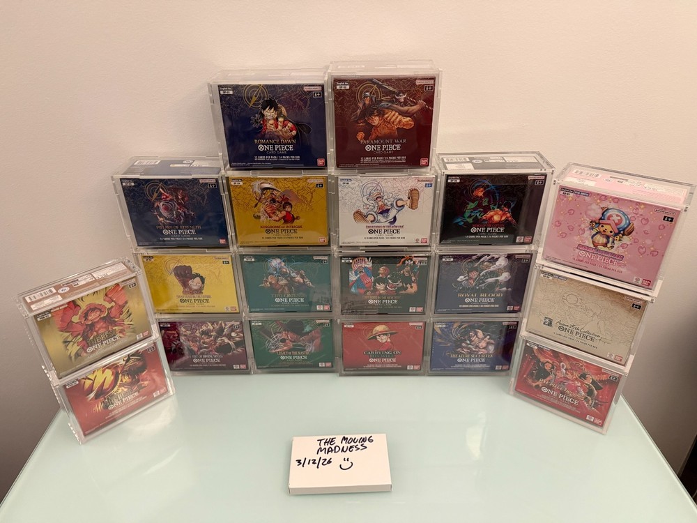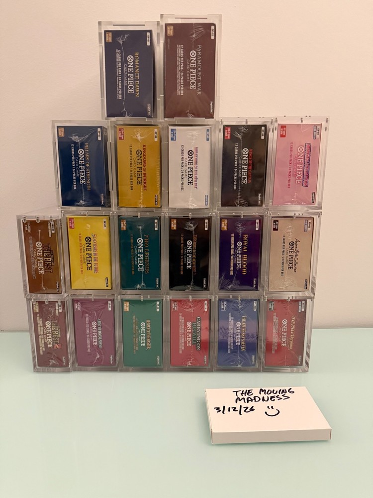 Please Read Before Purchasing Please review the full description and all photos before completing your purchase. Product Description: One Piece Booster Box Collection + Acrylic Display boxes OP01 Romance Dawn (White Bottom) OP02 Paramount War (Red Bottom) OP03 Pillars of Strength OP04 Kingdoms of Intrigue OP05 Awakening of the New Era OP06 Wings of the Captain OP07 500 Years in the future OP08 Two Legends OP09 Emperors in the new world OP10 Royal Blood OP11 Fist of Divine Speed OP12 Legacy of the Master OP13 Carrying on his Will OP14 The Azure Sea Seven EB01 Memorial Collection EB02 Anime 25 th Collection EB03 Heroines PRB01 The Best PRB02 The Best 2 Authenticity Guarantee This product was sourced directly from large, reputable retailers with along-standing track record of positive customer feedback. This collection is 100% authentic and officially licensed . All booster boxes are sealed and are in new condition (refer to photos). Additional photos are available upon request, and I am happy to provide a copy of the purchase invoice for verification for each booster box for peace of mind. Packaging & Security Stored in smokefree and pet free environment. For the protection of both buyer and seller, the entire packaging and shipping process is documented to ensure accuracy, transparency, and accountability. Your order will be packed well using foam boxes for OP6-OP14 + EB01-EB03 (Note: OP01-OP05+ PRB01-PRB02 will be heavily wrapped in bubble wrap). Photo of packaging is an example and for reference. Foam box lids on the booster boxes will be taped down. Then those foam boxes will be wrapped with larger bubble wrap and foam peanuts if needed. All shipments are sealed with tamper‑evident tape , allowing both parties to verify whether the package has been opened or altered before delivery. Shipping& Payment Policy (I am covering shipping and insurance + most likely looking at about 6-7 individual packages). This order is shipped via USPS Priority , fully insured , and includes tracking and signature confirmation upon delivery for each package. High‑value items are packaged securely to ensure safe arrival. To maintain a secure transaction environment, I reserve the right to cancel orders that raise concerns related to account verification, address inconsistencies, or buyer history . Serious buyers only. Return Policy All sales are final . Due to the collectible and sealed nature of this product, returns or exchanges cannot be accepted. This policy protects the integrity of the item and ensures a fair and secure transaction for both parties. By completing your purchase, you acknowledge and agree to these terms.