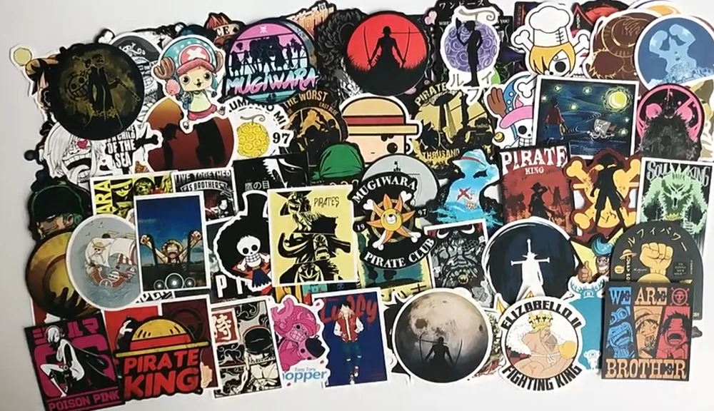 100 high quality One Piece anime stickers Great deal - waterproof - indoor - outdoor Shipped safely and securely Measure 2" - 3" each Luffy Nami RoronoaZoro Usopp Jimbei and more See my other listings for more Sticker sets > Combined order discount: Add any 2 sticker sets or enamel pins to cart and get a 3rd at 60% off Mix and match <