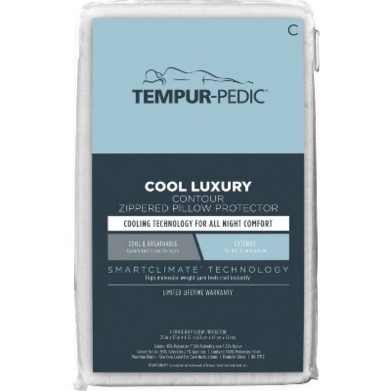 Description Protect your contoured pillow without trapping in heat with the Tempur-Pedic Cool Luxury Contour Zippered Pillow Protector. This pillow cover is made with cool and comfortable knit fabric that uses Smart Climate technology and high molecular weight yarn that instantly feels cool to the touch. This pillow protector uses a zippered construction that fully encases your contoured pillow to help extend the life of your pillow. It is machine washable and dryable for easy care and continued use. highlights Smart Climate Technology with high molecular weight yarn that feels cool instantly Cool and comfortable luxury knit is cool to the touch Waterproof to protect against spills and stains Tempur-Ultifit System with 2-way stretch on top and sides Fits mattresses up to 20 inches deep Machine washable and dryable