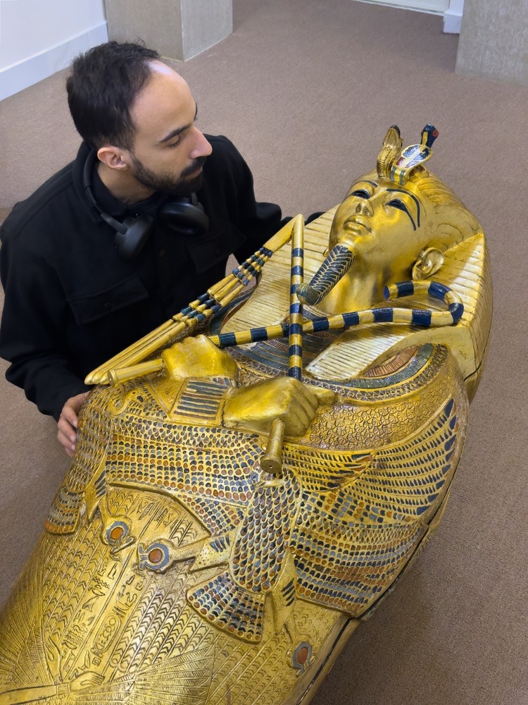 This one-of-a-kind Pharaonic King Tutankhamun life-size coffin is a stunning piece of art from Egypt's late period BC. Made of durable fiber glass material, this vintage reproduction showcases the intricate craftsmanship and vibrant colors of ancient Egypt. The antique style and multi-color design make it a unique and eye-catching decorative collectible that is sure to be a standout in any collection. PS. This Piece is Originally $25000 , But Since Ebay Restricts Listing Items Above $500 from Sellers from Egypt , We Put the Value $500 and the Rest Shipping Fees