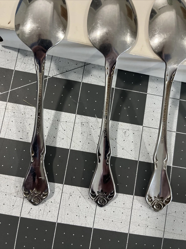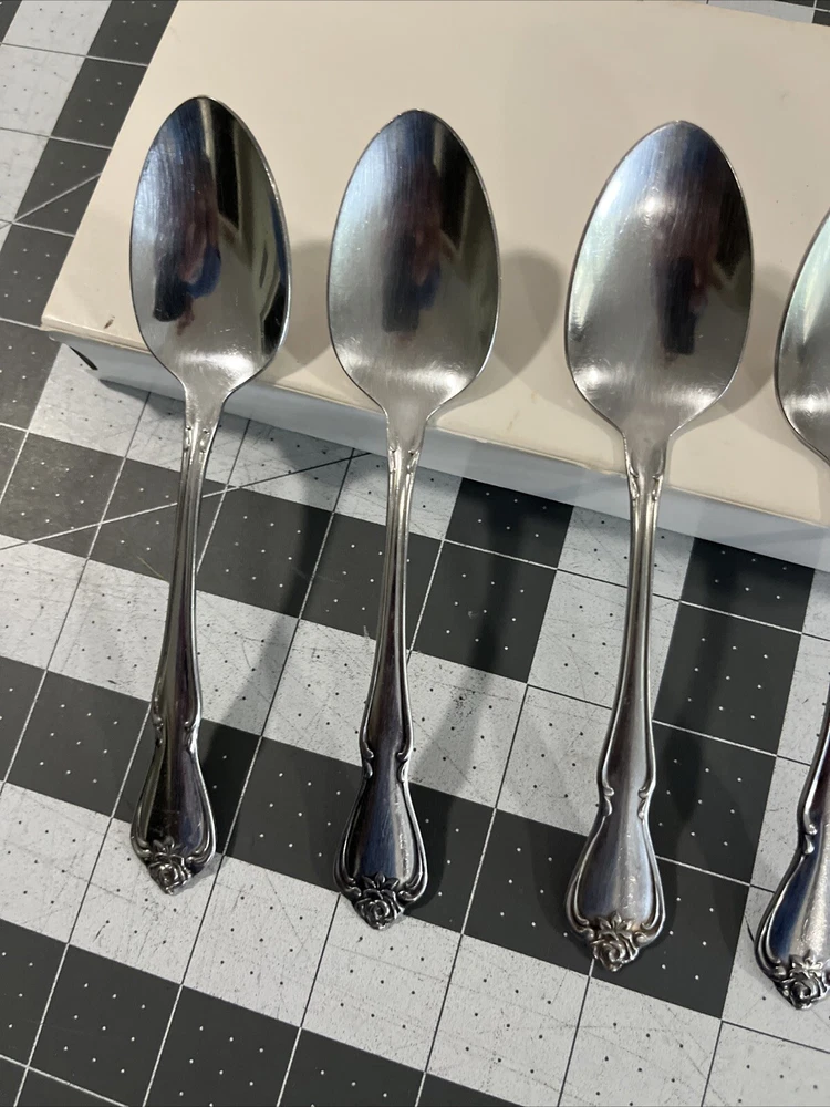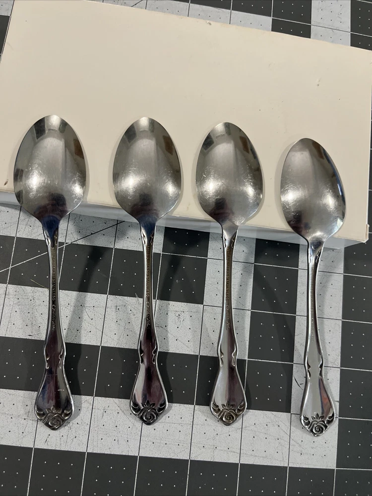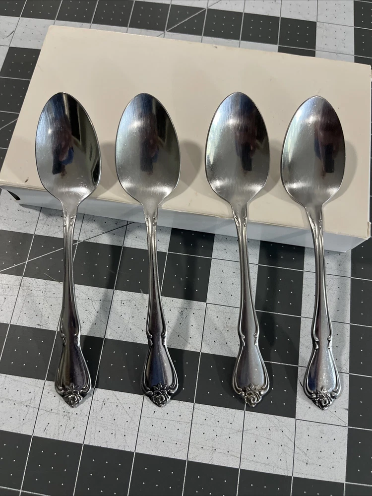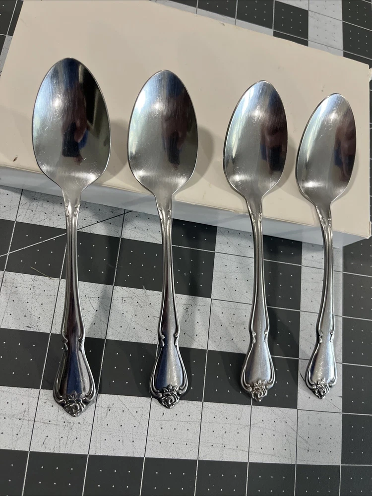 Oneida ARBOR ROSE (4) Teaspoons TRUE ROSE 1881 Rogers Ltd Stainless Flatware