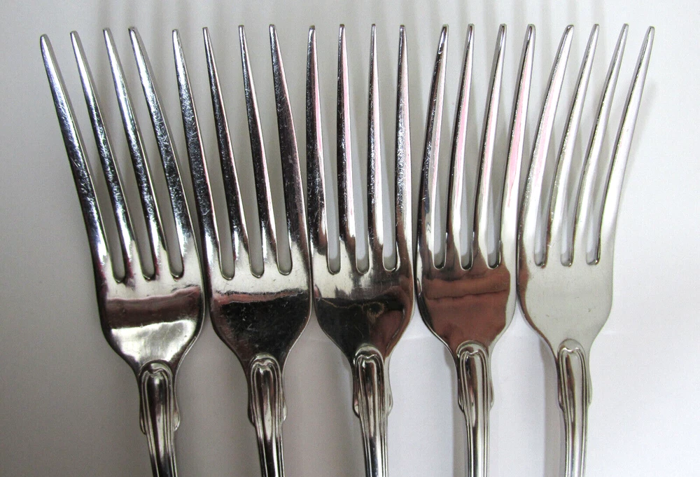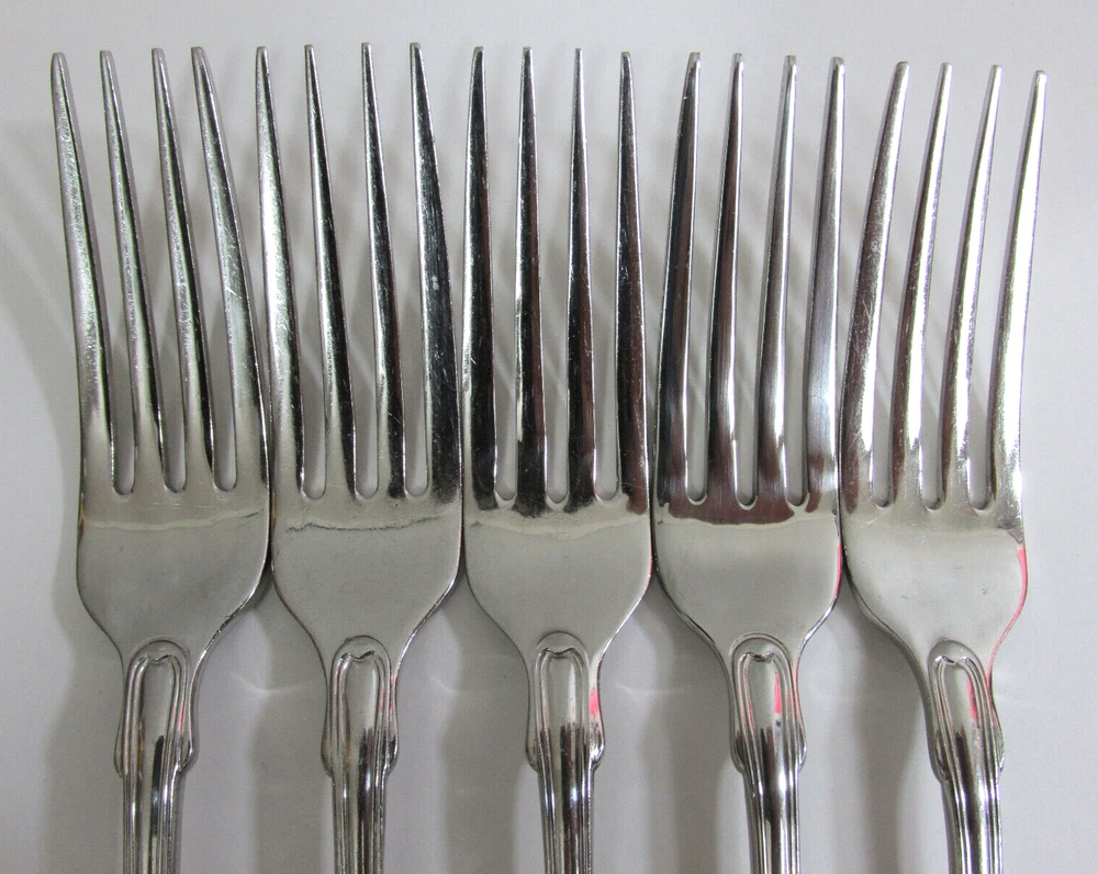 Oneida Classic Shell Set 5 Dinner Forks Cube Community Stainless Flatware Lot