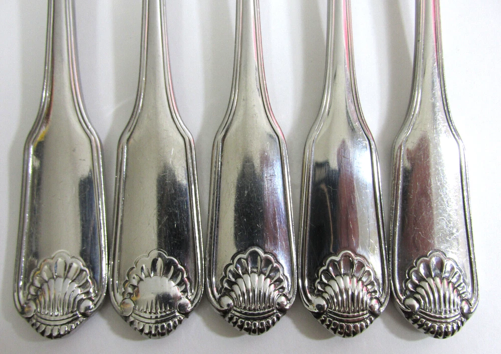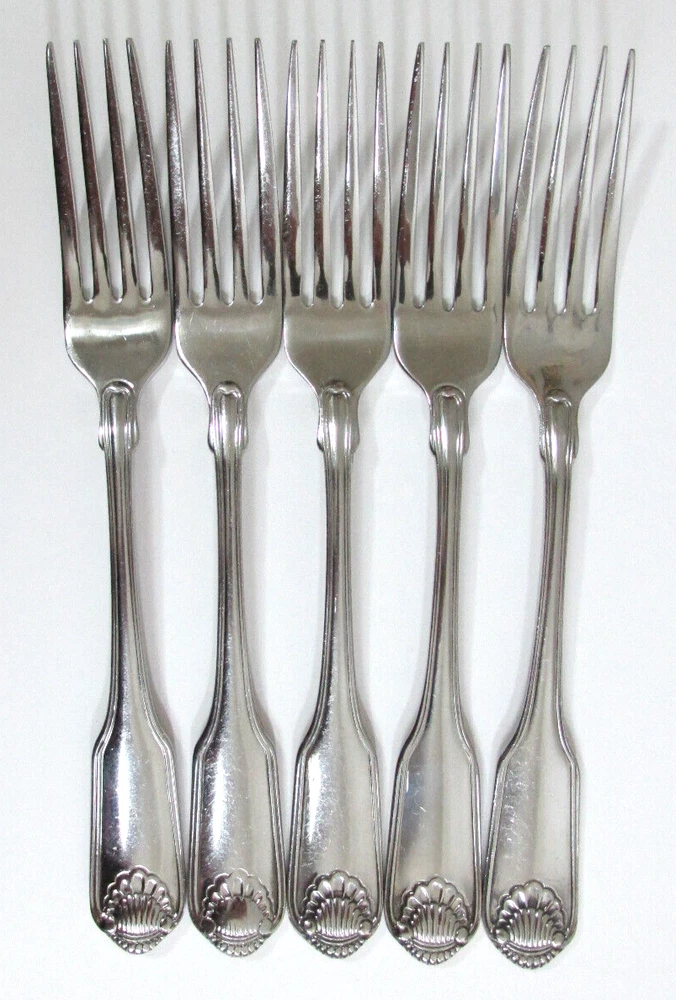 Set of 5 Dinner Forks - Oneida Classic Shell Stainless Flatware Silverware Add a touch of tradition to your collection with this set of flatware from Oneida Classic Shell line. Made of stainless steel, this silverware features a simple handle pattern that will complement your dining table. Measures about 7.6 inches Good Condition - Will show minor scratches