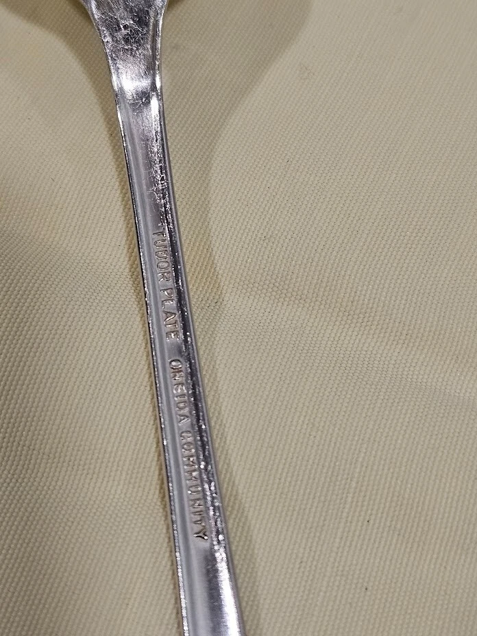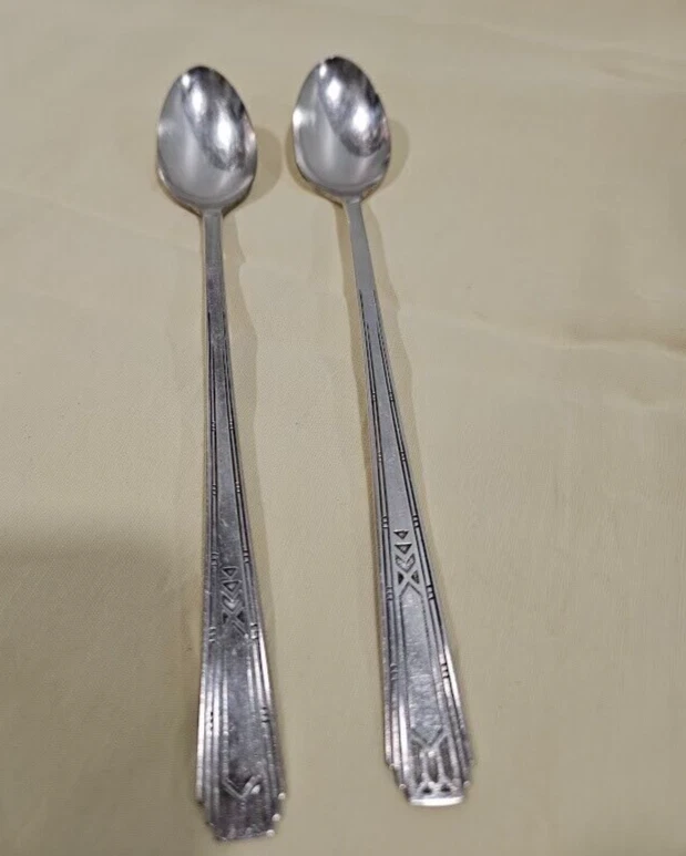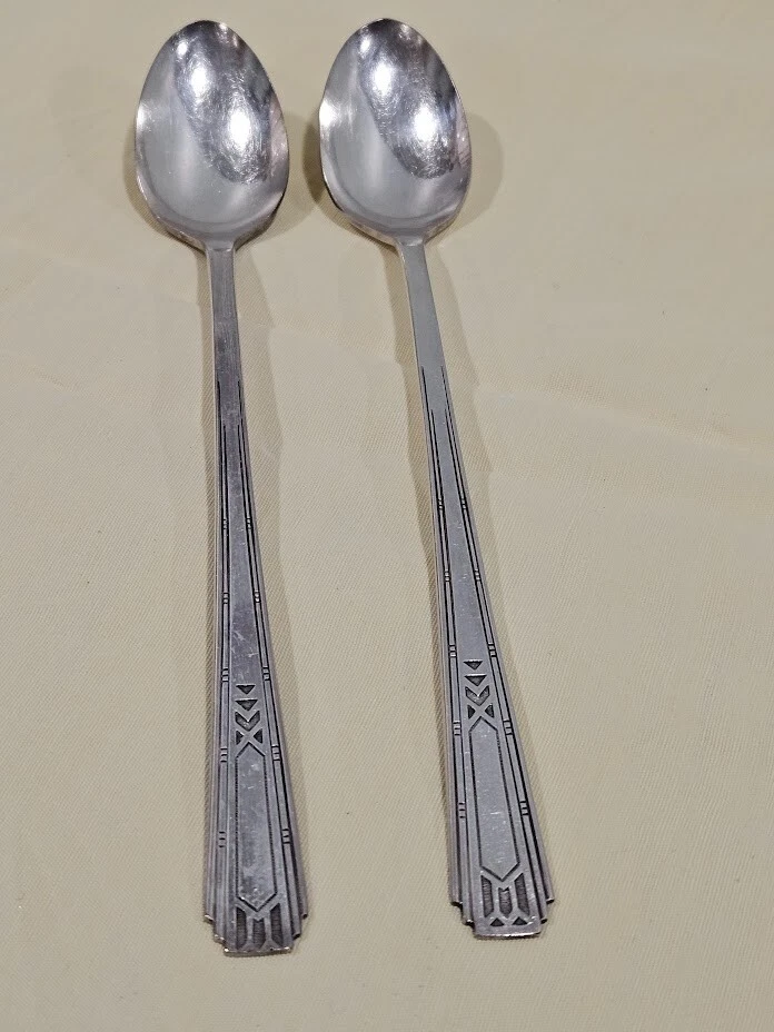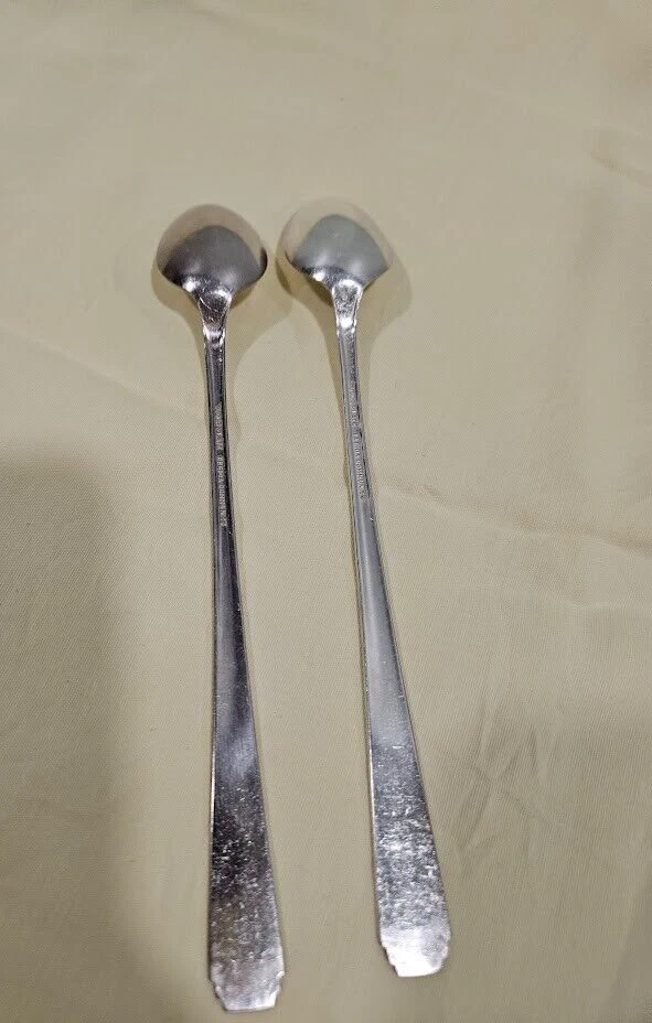 Set of 2 Oneida Community Friendship Medality 1932 Tudor Plate iced tea spoons.