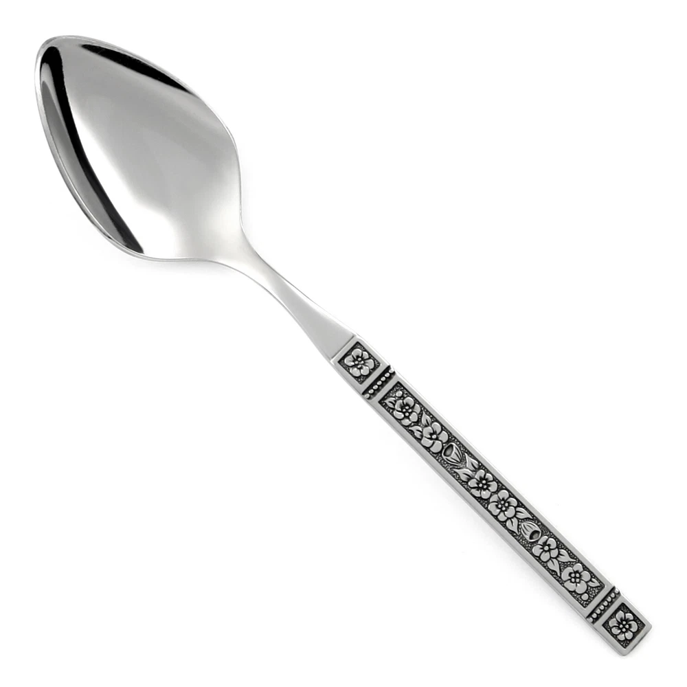 choice flatware Oneida Dominica Pieces Dinner Knife 9" Length 9" Handle Type Solid Handle Blade Type Modern Blade Place/Oval Soup Spoon 6 7/8" Length 6 7/8" Salad Fork 6 1/4" Length 6 1/4" Teaspoon 6 1/8" Length 6 1/8" Condition Statement Great condition with only light, minor scratches from common use. Marks WM A ROGERS DELUXE STAINLESS Oneida Ltd