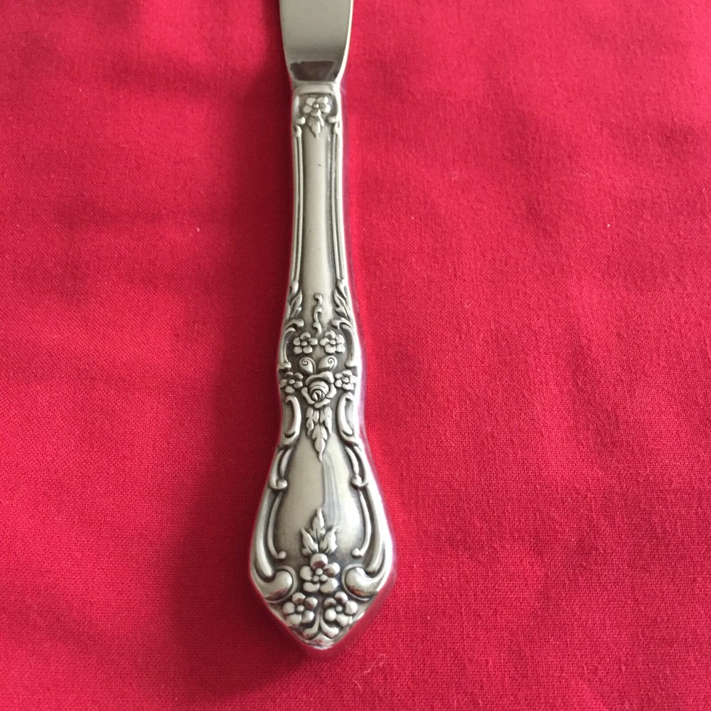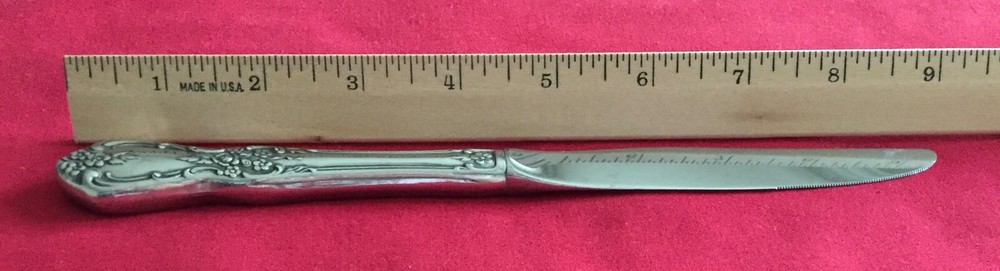 Manufacturer: Oneida Pattern: Kennett Square Type: Stainless Steel Piece: Dinner Knife Length: 9 1/8"