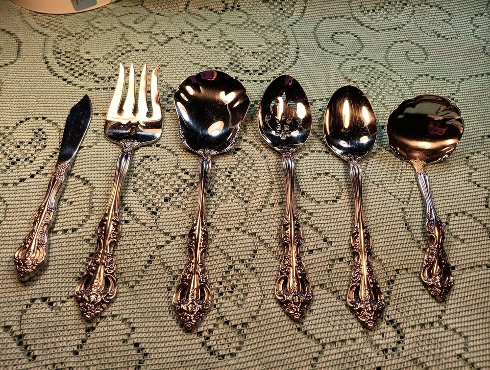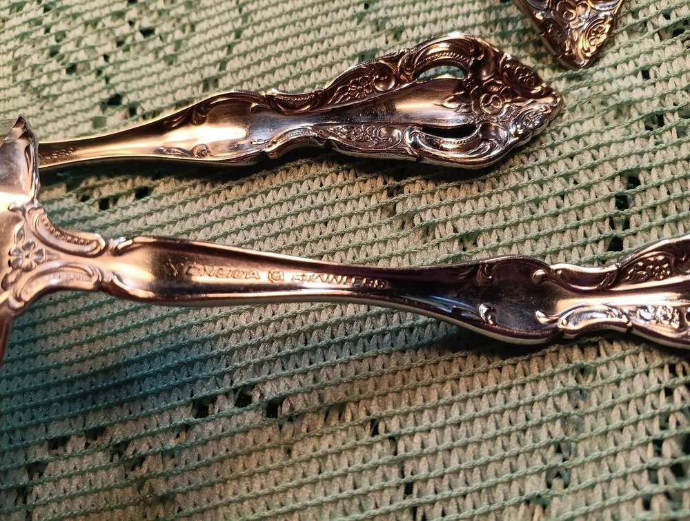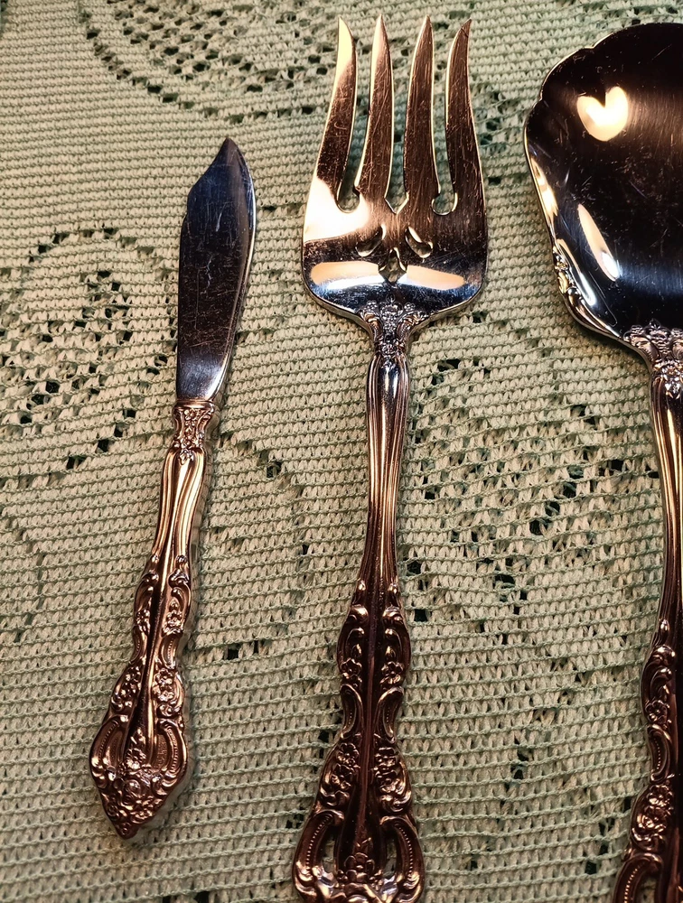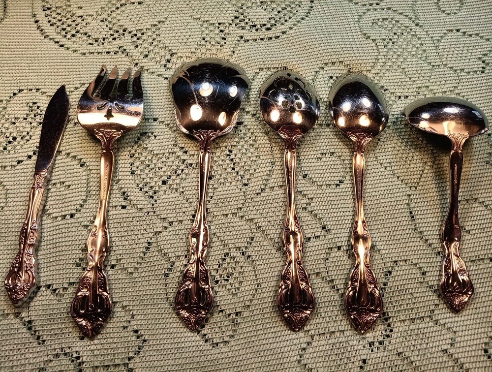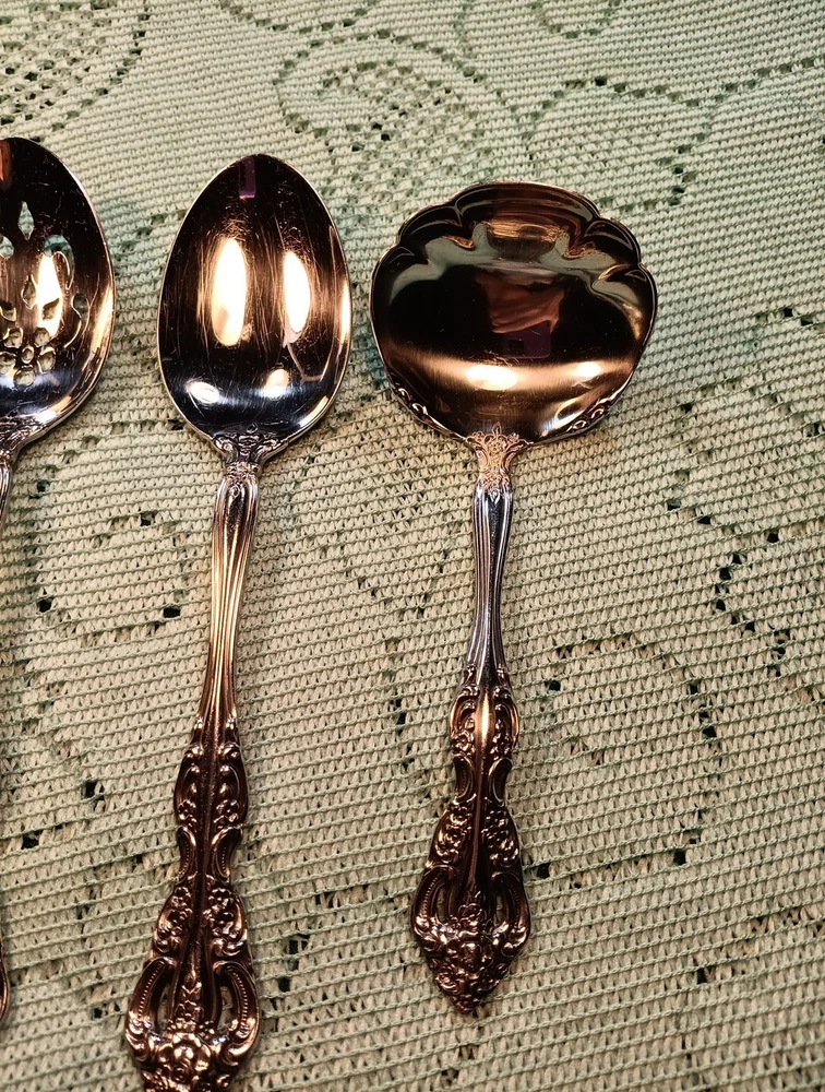 Handle Material:Stainless SteelUPC:Does Not ApplyDepartment:AdultsMaterial:Stainless SteelOccasion:All OccasionMPN:Does Not ApplyHandle Pattern:FloralFinish:Glossygtin13:Does Not ApplySeller Notes:“A few minor scratches”Model:MichelangeloCountry/Region of Manufacture:United StatesSet Includes:Ladle, Serving Set, Serving SpoonCharacter:naType:Hostess SetStyle:TraditionalBrand:ONEIDAColor:Silver