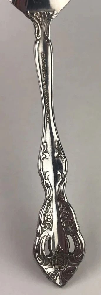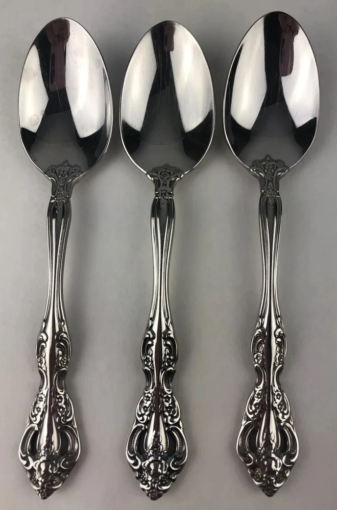 Oneida Michelangelo Cube Heirloom Stainless Flatware 3 Teaspoons Shows signs of light use and may need additional cleaning. Little spotting in places but no dishwasher or disposal damage. Please see pictures for details as this is part of my description.