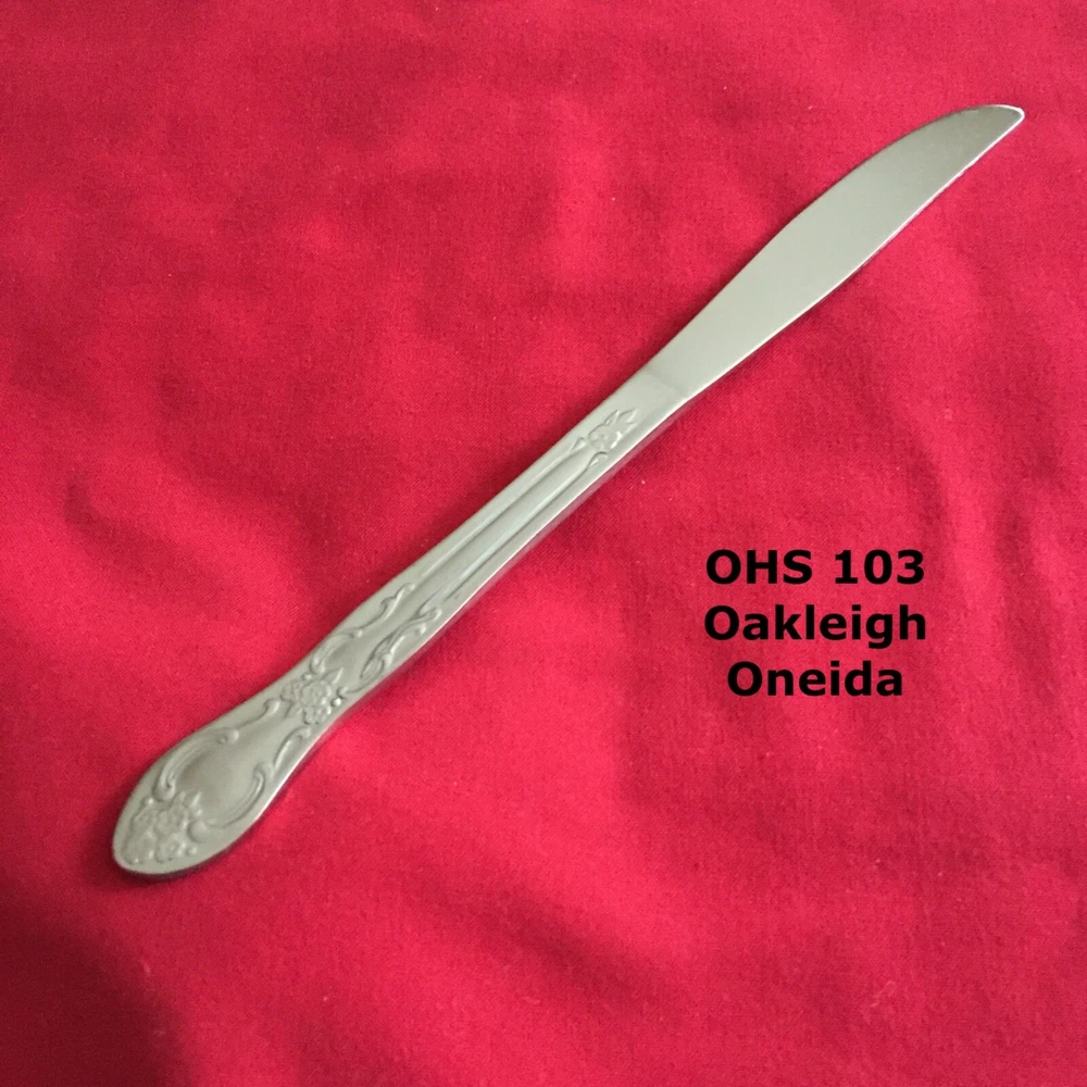 Manufacturer: Oneida Pattern: OHS 103 - Oakleigh Type: Stainless Steel Piece: Dinner Knife Length: 8 3/8"