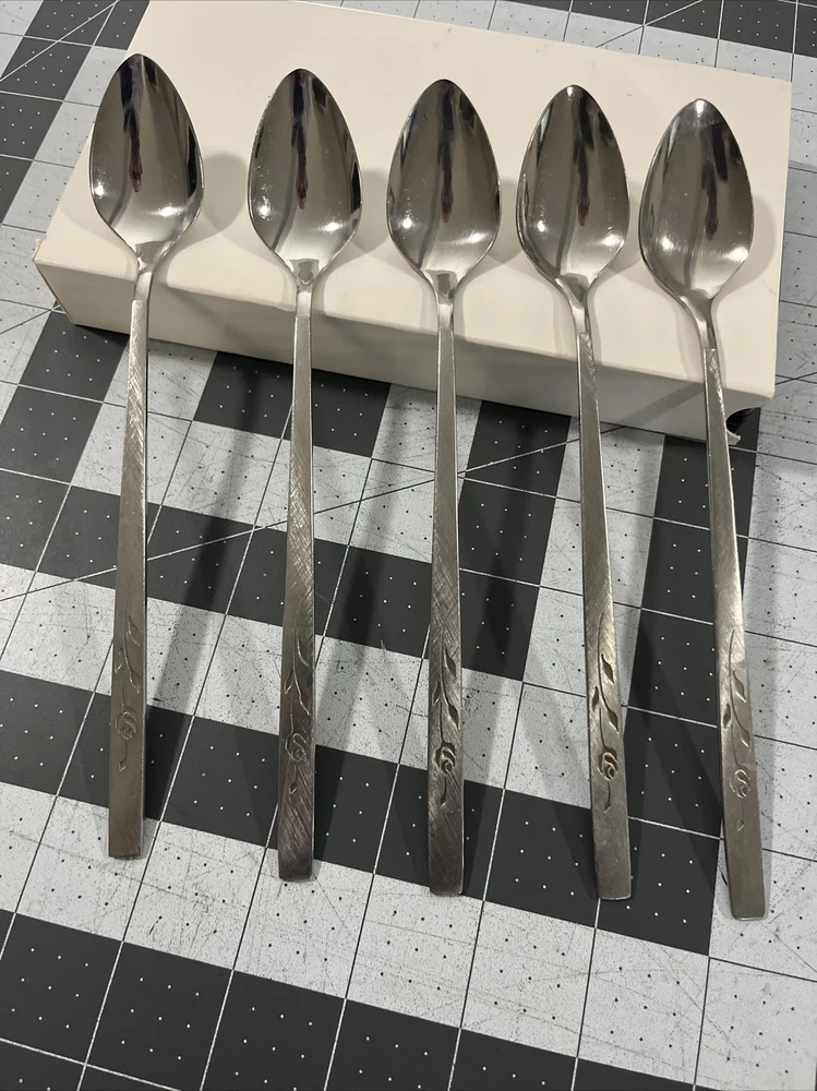Oneida / Oneidacraft Deluxe Capistrano (5) Iced Tea Spoons Stainless Flatware