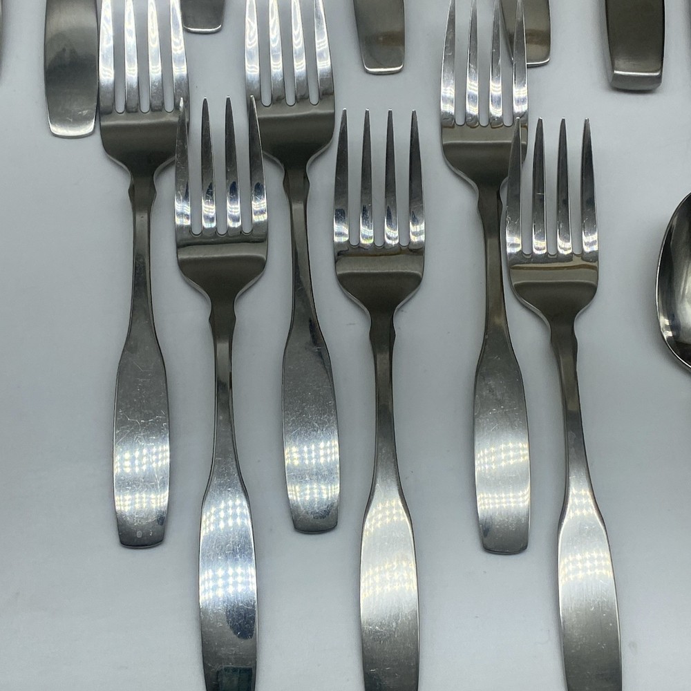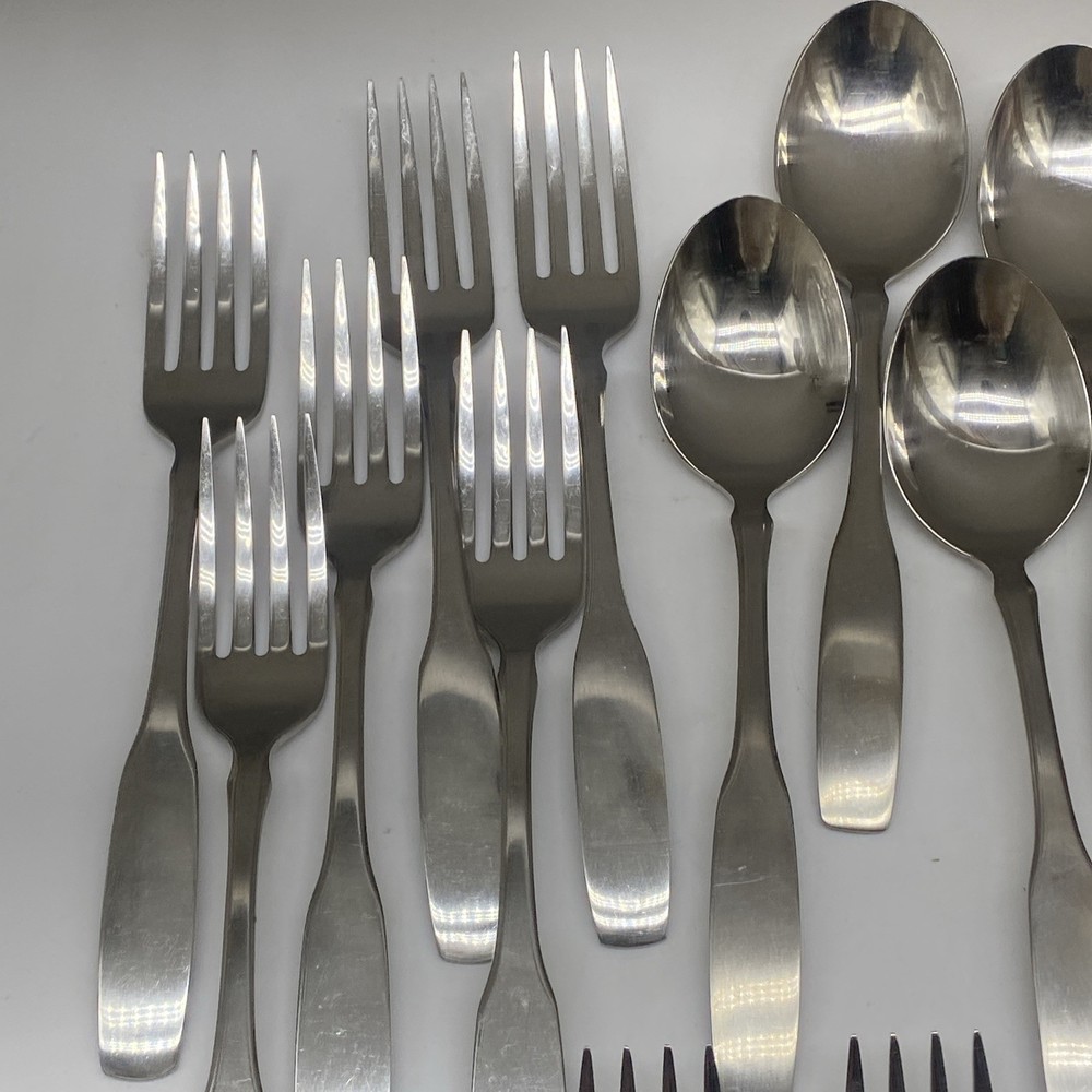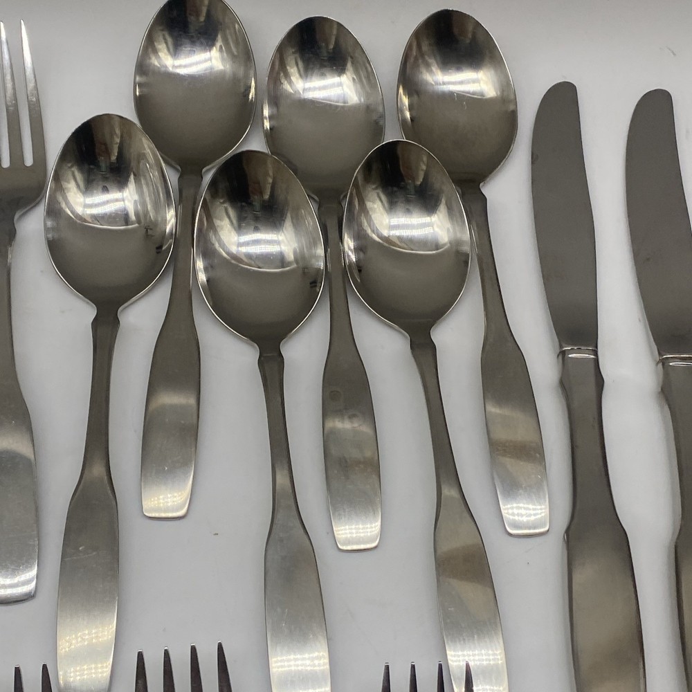$ 105.58MCM Vintage Stainless Steel Japan Flatware Set Faux Teak Wood Handles 20PC