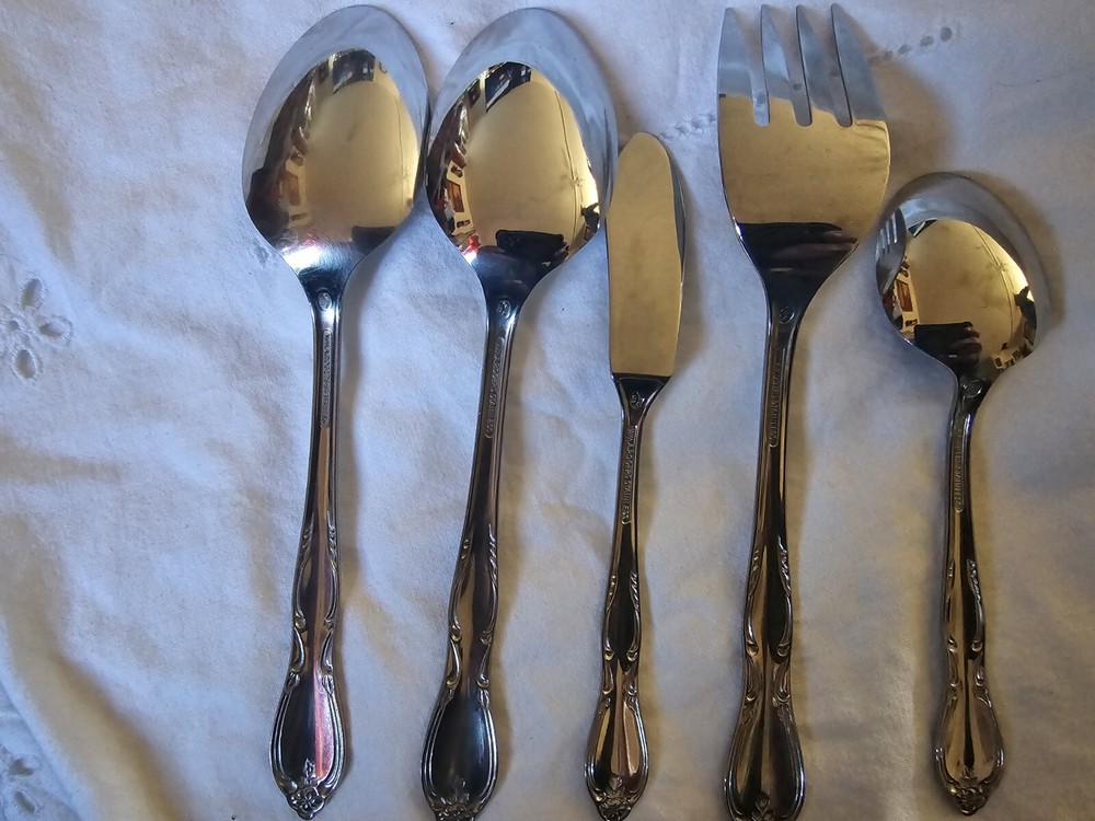2 large serving spoons serving fork knife and rounded spoon that is not a teaspoon or table spoon. GREAT CONDITION SEE PICS