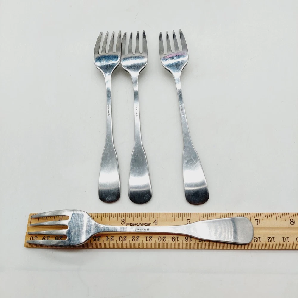 Style:ColonialType:Salad ForkUPC:Does Not ApplyBrand:ONEIDAColor:Silvergtin13:Does Not ApplyMaterial:Stainless SteelHandle Pattern:SolidModel:Yankee ClipperSet Includes:ForkDepartment:AdultsItem Length:6 inCountry/Region of Manufacture:United StatesFinish:SatinMPN:Does Not ApplyHandle Material:Stainless Steel