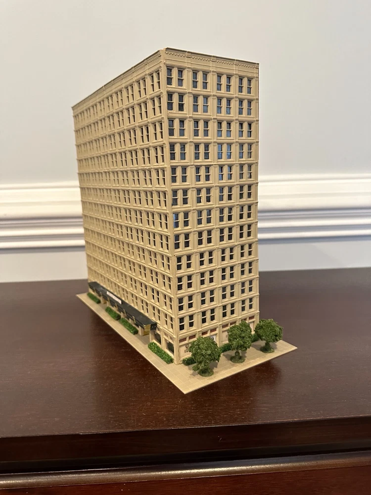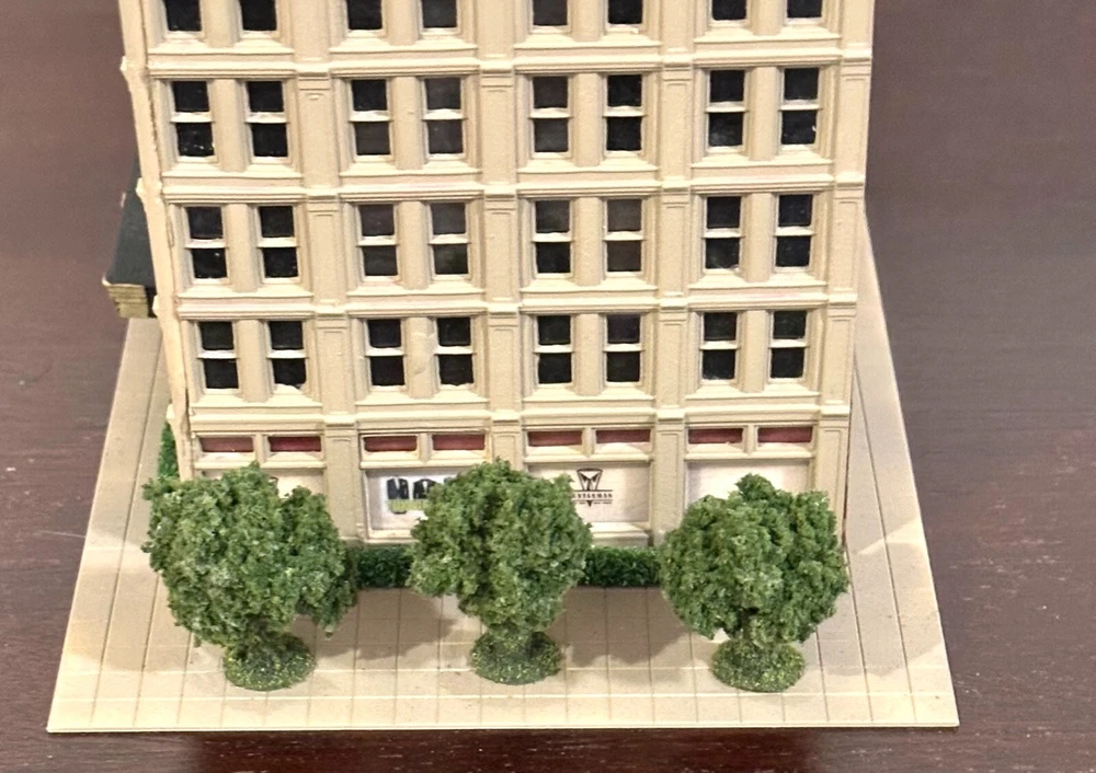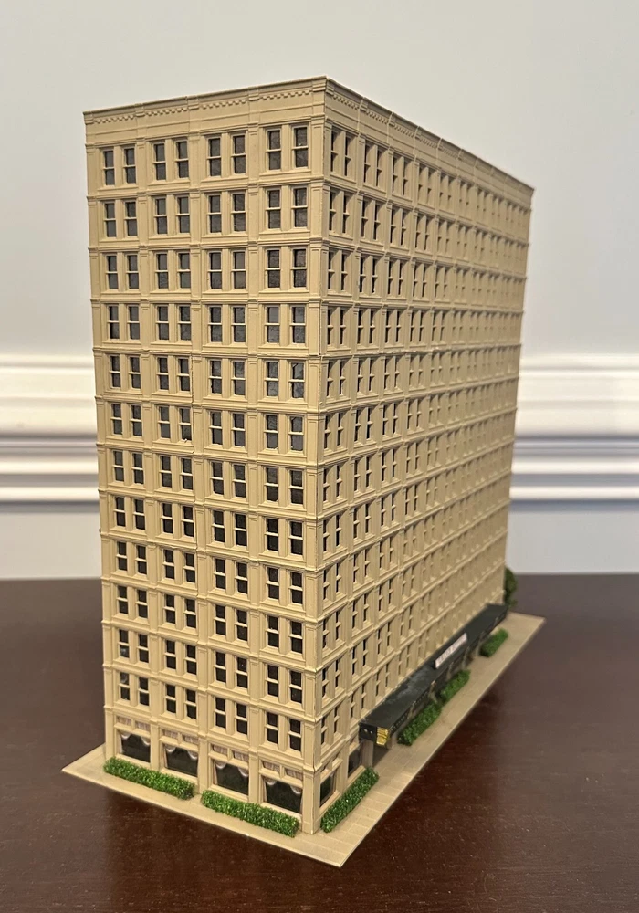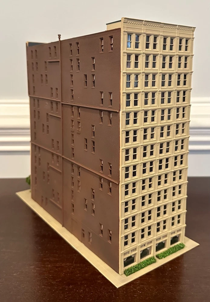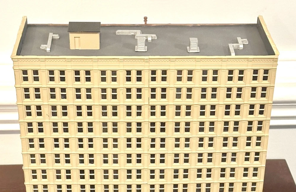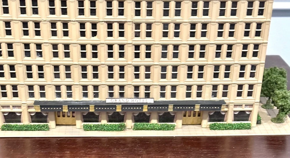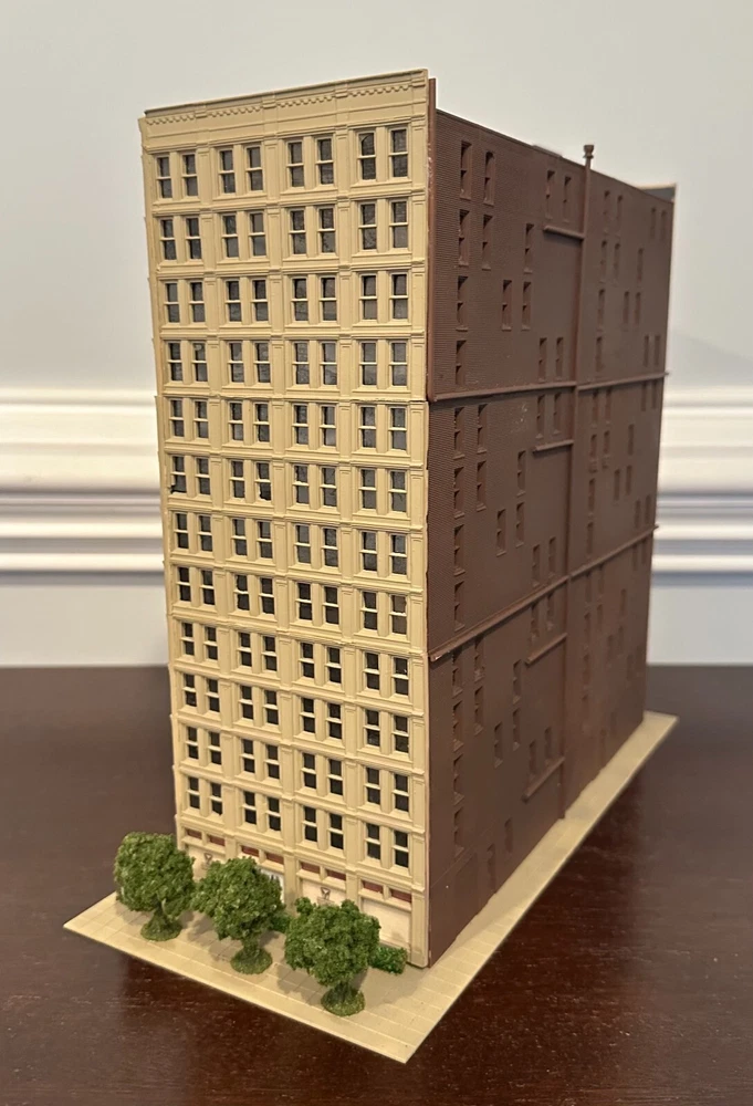 One-of-Kind N scale Custom Built/Painted 13 Story Tower " Grand Hotel" Tall Building New, Fully assembled Without a box, Black Mirror Window treatments, Landscaping 11" Wide. 5 1/2" Deep 11 " High * We Combine Shipping costs on Multiple purchases, shipped in one package, just purchase the items and wait to receive an invoice with the reduced shipping cost before you pay.