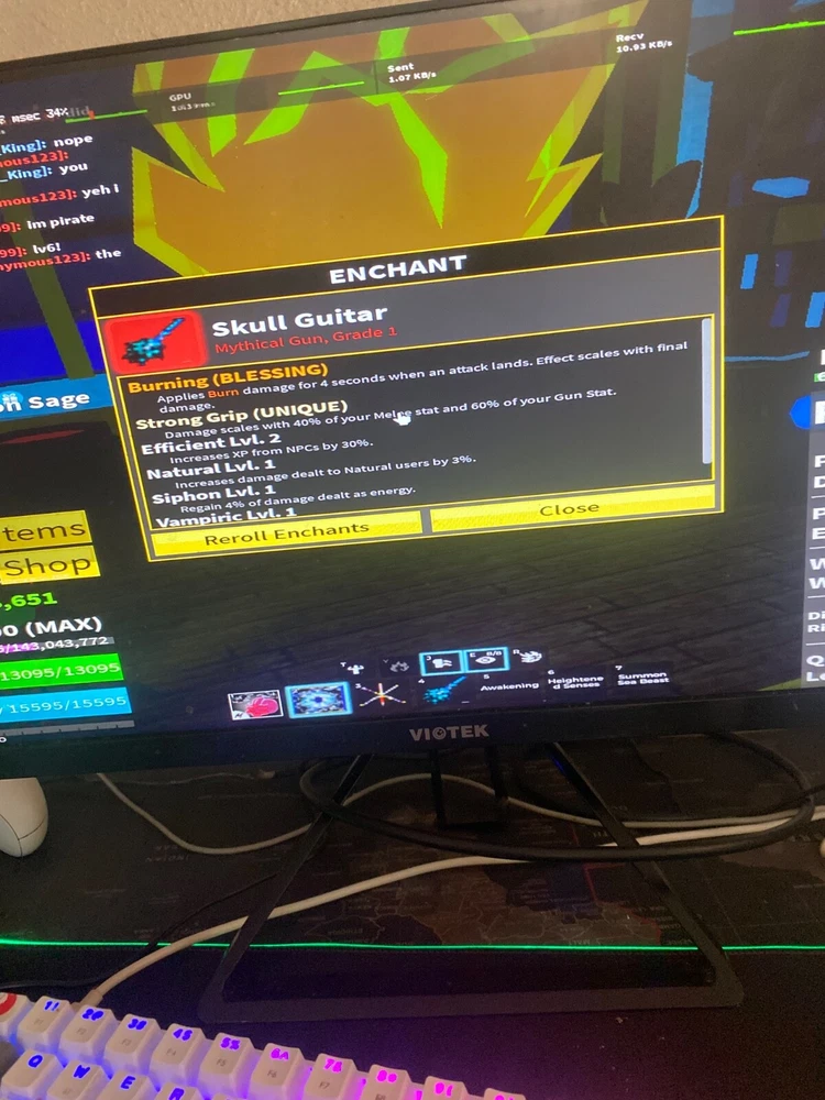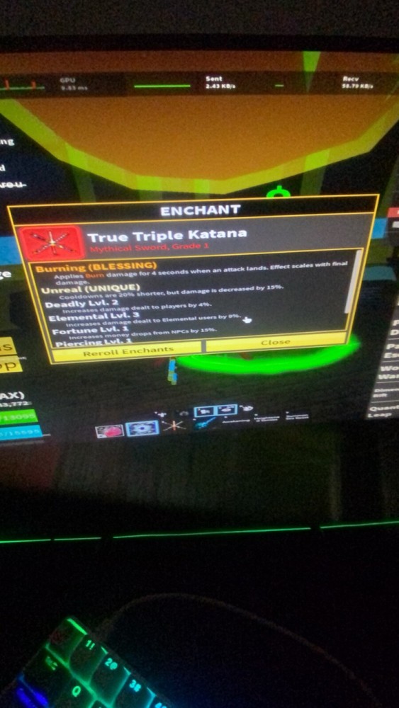 I’m selling a blox account with every item ingame it has all perms but barrier spider love and falcon has every sword 600 max has some blessing it has every v4 max but human has 54m belli