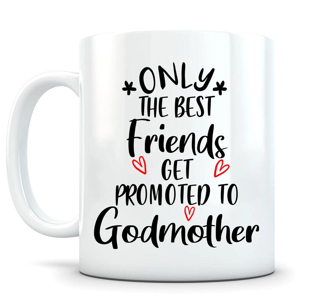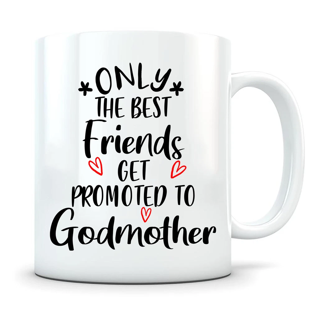 Only The Best Friends Get Promoted To Godmother Godmother Proposal Mug Baptism Product Details.. This high quality 11oz. ceramic white mug has a premium hard coat that provides crisp and vibrant color reproduction sure to last for years. Perfect for all hot & cold beverages. The highest quality printing possible is used. It will never fade no matter how many times you wash it. Material: 100% Ceramic. Print both sides. Dishwasher and Microwave Safe. High Gloss + Premium White Finish. Printed in the U.S.A. Personalized & Custom. We support personalized and custom mug to add custom, when placing an order, you can add notes to the "order note" in shipping address section. Also you can contact us directly via message. Shipping Info. Ready to ship in 1 to 2 business days, All products are made-to-order and proudly printed in the United States. Shipped by USPS and DHL, You will receive your order in 5-7 days. Replace & Refund. All products are defective during shipping broken, chipped will be replaced free of charge. You are not satisfied with the product, we will refund 100% money to you. If any other issues arise, please do not hesitate to message, we would be more than happy to assist you.