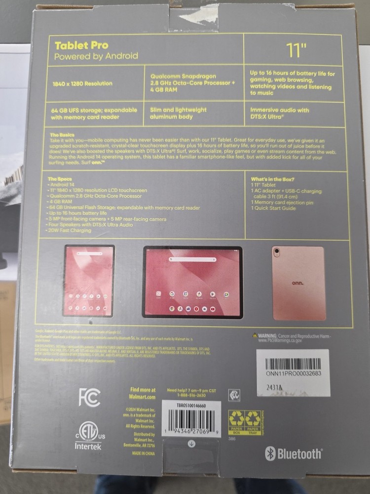 Onn. 100146660 11" Tablet Pro, 64GB (2024 Model) - Rose Gold. Shipped with USPS Priority Mail.