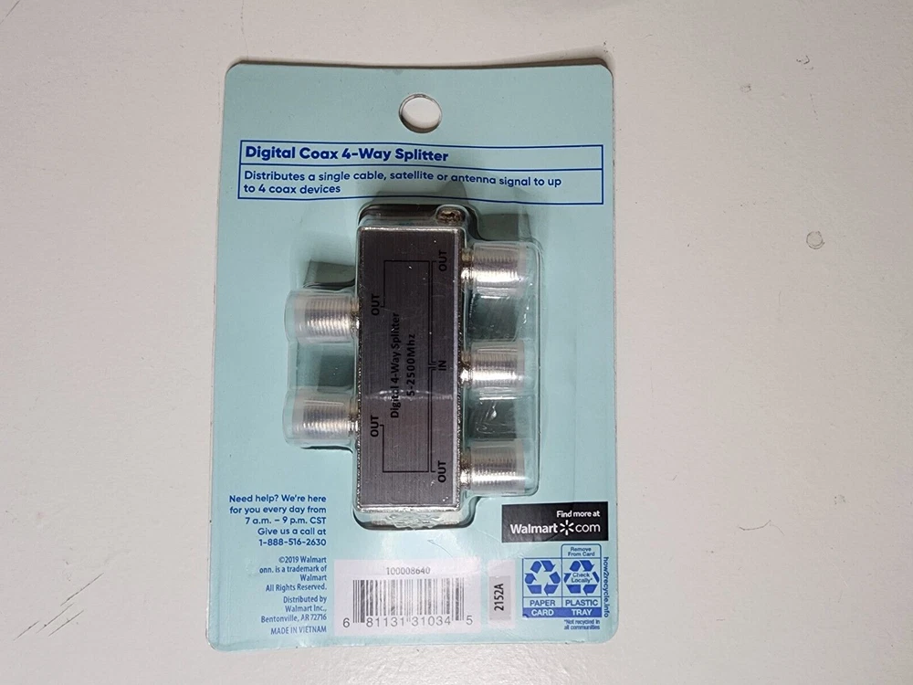 Onn Watch Digital Coax 4-Way Splitter NEW
