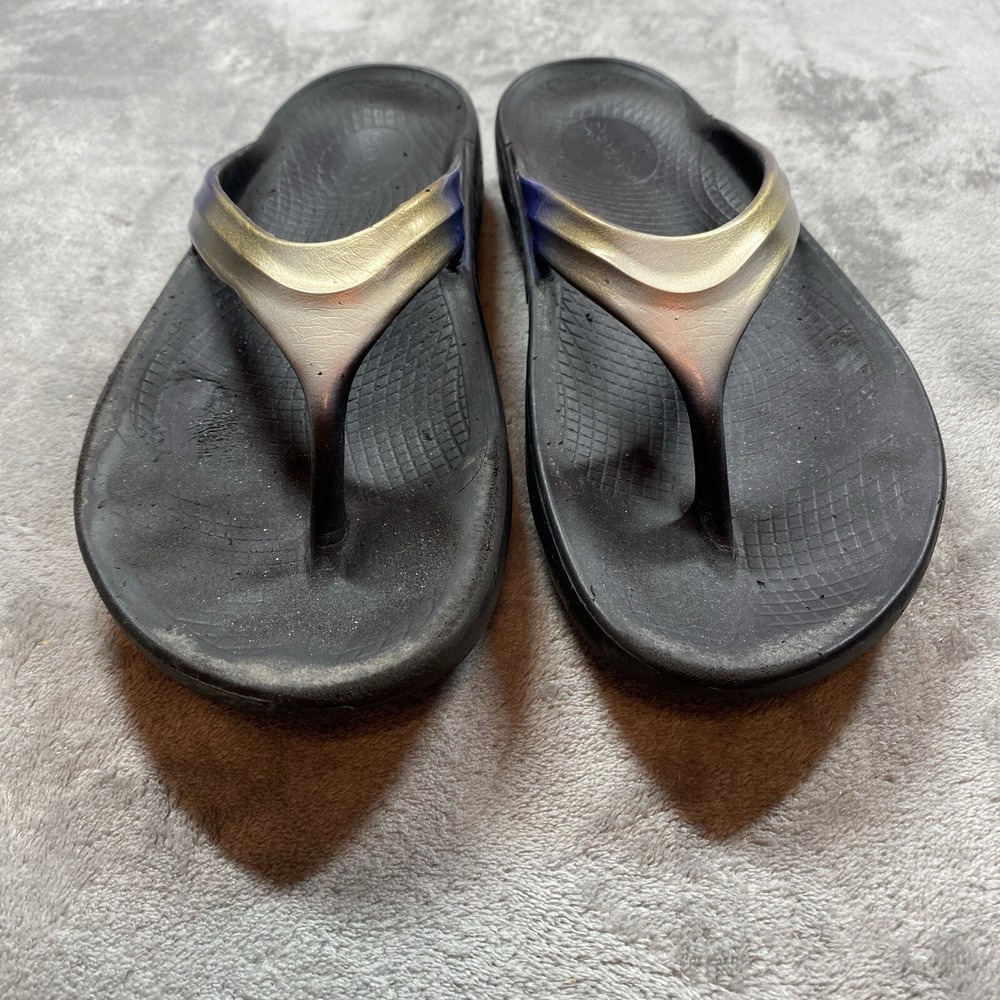 Oofos Oolala Luxe Recovery Sandals Women’s SZ 10 Black Calypso Flip Flop Thong Fair to good pre-owned condition. All clothing is subject to stretch or shrink from use and cleaning by prior owners. See photos for the actual item available. Feel free to contact me with any questions. Elevate your summer footwear game with these stylish OOFOS Oolala Luxe Recovery Sandals in black and calypso colors. Perfect for travel or casual occasions, these slip-on flip flops feature arch support, cushioning, and breathability, making them ideal for outdoor activities. The low heel height ensures comfort while the rubber upper material provides durability. These sandals are part of the OOFOS Luxe Sandal product line and come in a standard shoe width. The multi-color accents and logo detailing add a bohemian and hippie vibe, making them a great addition to any beach or college outfit. They are also lightweight and customizable, making them a versatile choice for any woman's wardrobe. Get ready for summer, fall, or spring with these OOFOS Oolala Luxe Recovery Sandals. Shop our store with confidence as we offer 30-day returns on all purchases. Additionally you can save money by making multiple purchases to take advantage of our discount shipping policy. You will pay the highest shipping cost for a single item in your cart and $3 for each additional item.