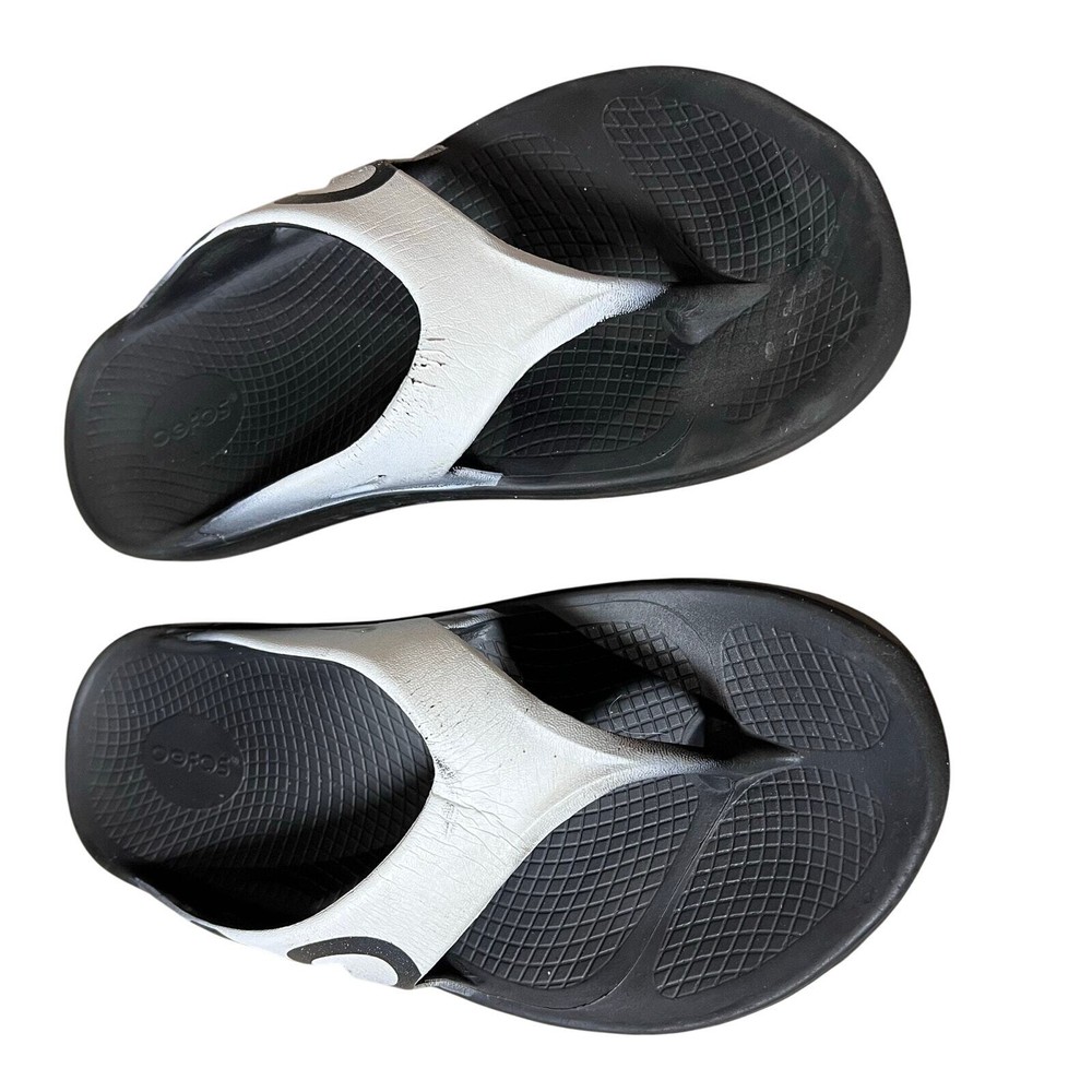 Oofos Ooriginal Flip Flop Thong Sport Sandals Black US M9 W11 Recovery Runner Superior Arch Support, Recovery Flip Flops Oofoam absorbs 37% more impact than traditional footwear foam and reduces stress on sore feet, knees, and back Great condition with some signs of wear. Paint is cracking on the tops and there is a color discoloration spots on the sides. No major flaws detected. Please inspect photos to approve condition. Pictures are of actual items - Pet-free and Smoke-Free home - Open to offers - FAST SHIPPING from Florida runner, running, run, walk, walking, walker, race, road race, 5K, Marathon, Recovery, Theme Park, standing, arch support, comfortable, support,