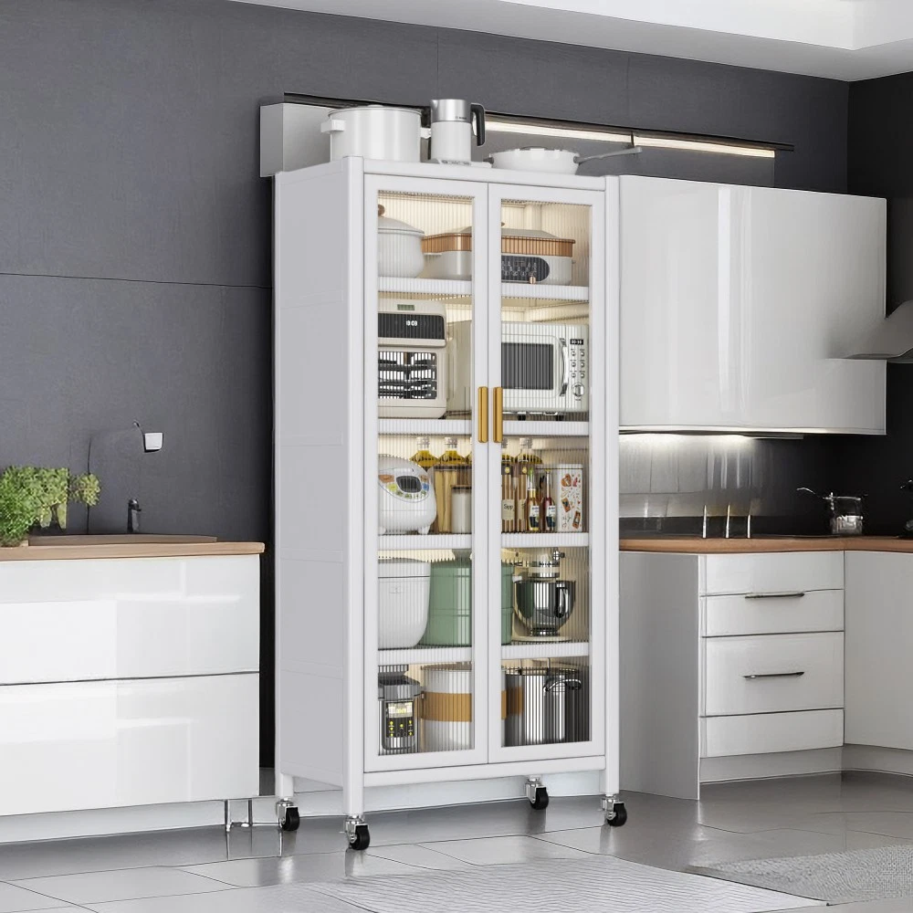 Key Features Vertical Storage Design: Relieves kitchen storage pressure by utilizing vertical space effectively, keeping your kitchen neat and organized. Double Open Cabinet Doors: Designed with double open doors for easy access to your items. The reasonable internal layout ensures classified storage, making it convenient to put in and take out kitchen essentials. Sturdy & Heavy-Duty Construction: Equipped with lockable cabinet doors for secure storage. The thickened metal frame is strong and durable, supporting up to 250KG of weight, suitable for heavy kitchen appliances like microwaves. Smooth & Flexible Movement: Features 360° rotating alloy universal wheels that allow easy movement with just a light pull. The wheels operate smoothly and quietly, bringing no noise to your kitchen. Secure Brake System: Comes with brake function on the wheels, which can fix the cabinet firmly in place when needed, preventing accidental sliding. Product Specifications Category Details Origin China Color Grey Material Metal Style American Design Application Scene Kitchen Assembled Dimensions (Inch) Length: 2.36 | Width: 15.75 | Height: 67.32 Product Weight (LBS) 46.96 Package Dimensions (Inch) Length: 68.50 | Width: 17.32 | Height: 6.69 Package Weight (LBS) 54.01 After-Sales Guarantee We stand behind the quality of our products! Enjoy 1-Year Quality Warranty and 30-Day Free Return & Exchange service. If you have any questions or concerns about the product, please feel free to contact us, and our customer service team will reply to you within 24 hours. Package Included 1 x Kitchen Storage Cabinet (with assembly accessories and instructions) Note: Easy to assemble with detailed instructions. The sleek grey finish matches various kitchen decors, adding a modern touch to your home.