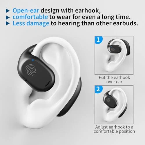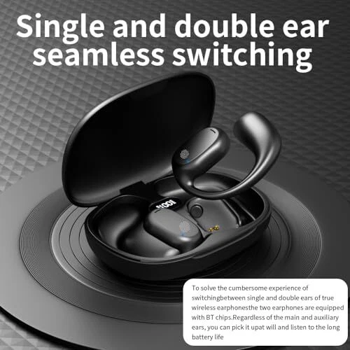 Return Policy Fast Delivery Trusted seller Open Ear Headphones Bluetooth V5.3 Wireless Earbuds with Earhooks with Digital Display Charging Case, Waterproof Conduction Headphones with Mic for Running, Cycling, Workout Product Description Open Ear Headphones - Featuring cutting-edge air conduction technology,headphones adopt a completely open design, the earbuds can be gently and firmly placed on the top of the ear ,avoiding potential ear infections, fatigue and discomfort, ensuring long-lasting comfort for extended use. Without any cumbersome neck wire or neck band, the open ear earbuds are suitable for everyone, whether you have long hair or wear glasses. Long battery life: The battery capacity of the single wireless earbuds is 110mAh and the battery capacity of the charging compartment is 300mAh, so the overall battery life can reach up to 48 hours, and 7-8 hours of use per day, which can meet the use needs for a week. Hear Your Surroundings:Open earbuds that rest on your ears without covering them, you can hear your music and your surroundings at the same time. Whether you are cycling, walking, running, working out or driving, you can always be aware of your surroundings, knowing you are safe and alert for changes in your environment. Latest Bluetooth 5.3 Technology: Bluetooth earbuds feature the latest Bluetooth 5.3 technology, ensuring a fast and stable connection.Then simply enable Bluetooth connection on your mobile phone to pair the device with your open ear headphones Bluetooth. Clearer and more practical than bone conduction headphones Bluetooth. You can enjoy a low-latency listening experience with audio and video perfectly synced without any delay. Powerful Stereo Sound : Equipped with 16.2 millimeters vibrating diaphragm speaker drivers that are 3 times larger than other wireless earbuds, headphones provide pure balanced audio and clarity output for all music genres. Crystal clear, deep, resonant bass, finely tuned sound signature delivers immersive sound that puts you on the center stage. Shipping Returns Payment Shipping Shipping is FREE to all addresses other than APO/PO boxes in the lower 48 states. All our stock ships from US-based warehouses. Shipped via USPS or UPS (depending on location and package weight) Unless stated otherwise, all orders will ship within 24-72 hours of your payment being processed. Check our feedback to see the great reviews of FAST shipping we offer. Returns Seller does not accept returns Payment We currently accept payment via eBay managed payments only. Once payment is cleared, we will dispatch your shipment within 1-3 business days. Please refer to the "Shipping" tab for more information regarding shipping speed to your destination.