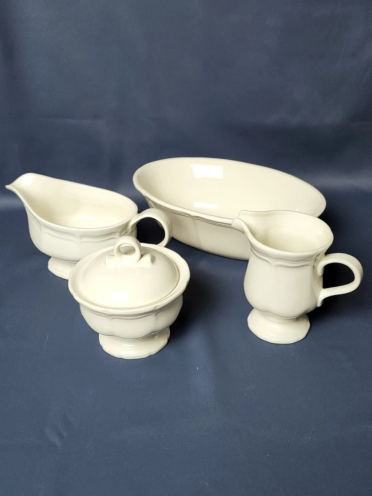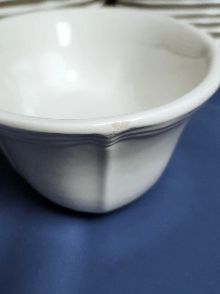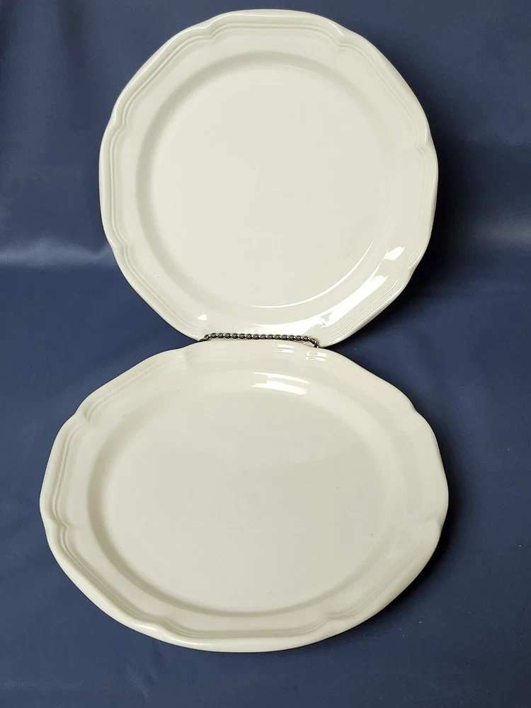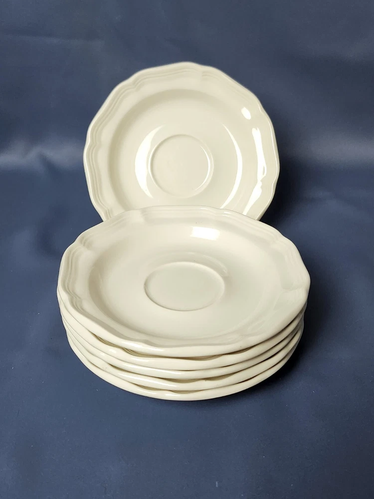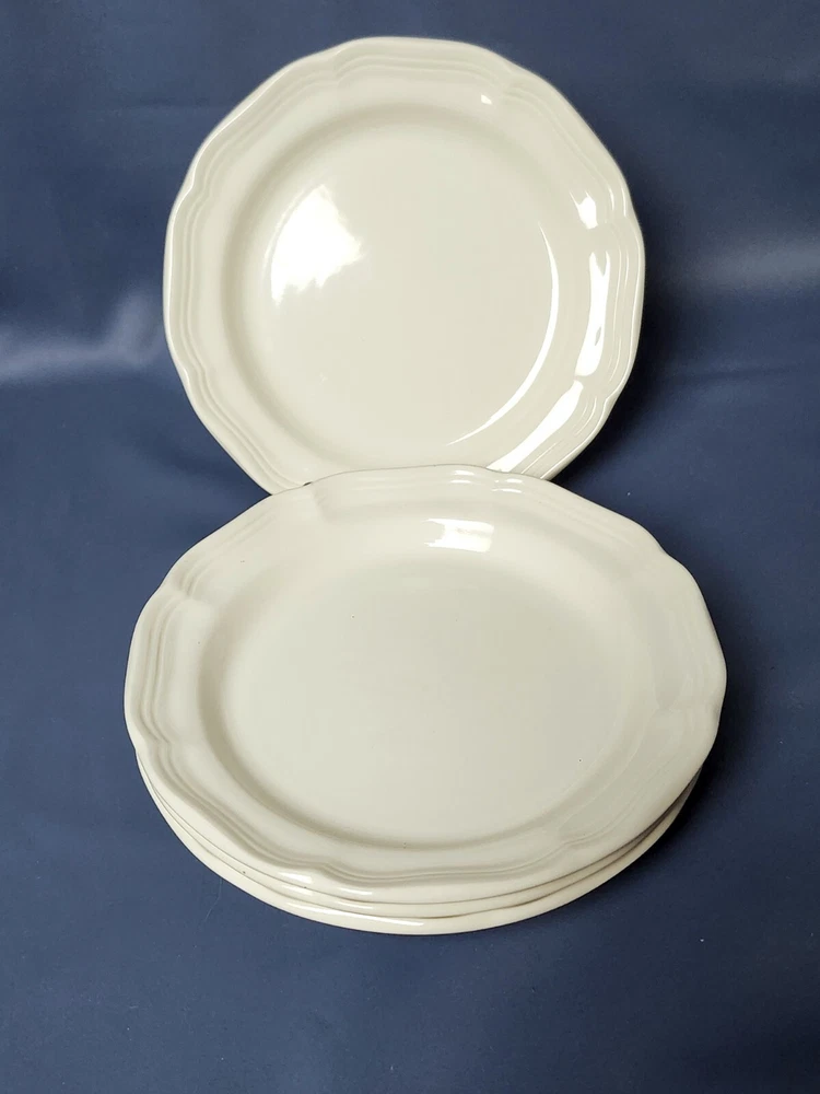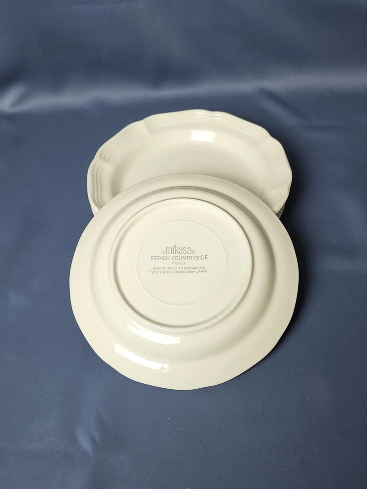 This Mikasa French Countryside listing offers sets of plates, bowls, cups, and serving pieces. I don't care for the place-setting approach to dinnerware - the 'one size fits all' concept is great for manufacturers, but not so great for consumers. People talk to me about their dinnerware all the time, and I have yet to hear someone tell me that they purchased service for 4, 6, 8, or 12, and it was exactly what they needed. Some folks (like me) are not going to use the teacups or saucers, and others prefer to use smaller luncheon plates rather than large dinner plates. I like to offer dinnerware in an open stock format, so people can purchase just the pieces they want, without having to buy the proverbial 'teacups'. After all, it's your dinnerware - it should reflect your style. Please note: The Oval Vegetable Bowl, which is in the 'Serving Lot' purchasing option, has a small damage spot on its rim at one end (picture provided). The Gravy Boat, also in the 'Serving Lot' group, does not come with its underwater. Neither of these conditions impacts the beauty or functionality of the pieces, and the price for the 'Serving Lot' group has been adjusted accordingly. This listing offers a variety of plates, bowls, and yes, even cups from Mikasa's French Countryside collection, as well as some serving pieces. With its creamy white color and rounded shape, this dinnerware is the perfect choice for both elegant events and more casual daily use. Mikasa has also created this dinnerware to be very practical and usable. It is microwave and dishwasher safe, its glazed finish cleans easily, and it is quite durable. Mikasa introduced French Countryside dinnerware in 1974, and now, 50 years later, this pattern has grown to more than 200 different pieces and is still in production. Given the popularity of French Countryside, Mikasa introduced English Countryside dinnerware in 1989 and Italian Countryside in 1994. Please bookmark this listing and check back from time to time. I will restock this listing and add new pieces periodically. Thank you for your interest.