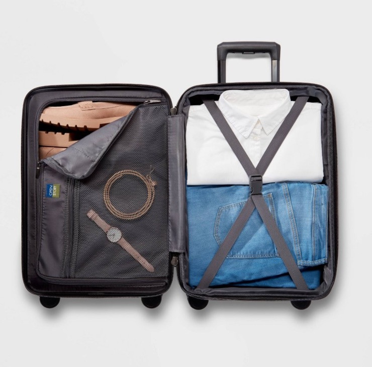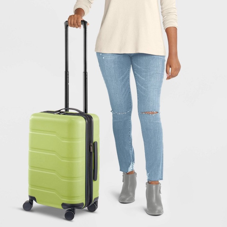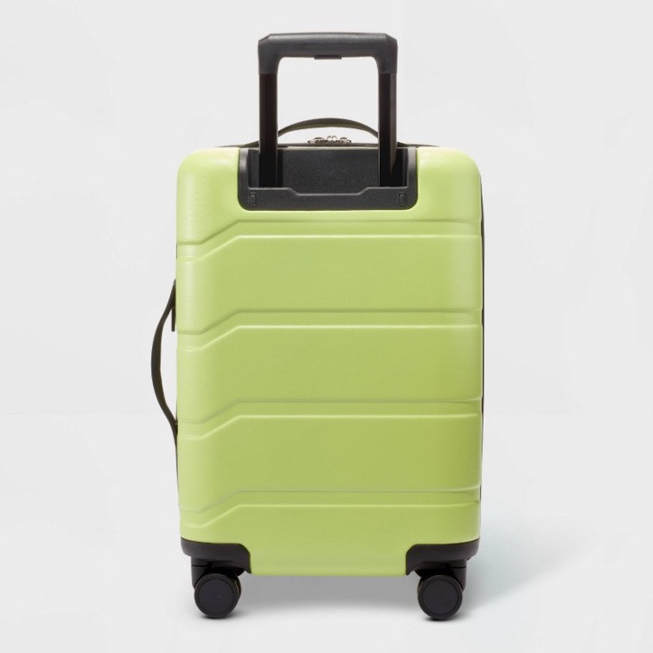 This Hardside Carry-On Suitcase from Open Story™ is sure to become your favorite travel companion for business trips or vacations. Featuring a full zip-around closure, this hardside suitcase can expand 2" to offer you extra space for additional stuff. The interior features a zipper compartment with a generous mesh zip pocket at one half, while the other half is designed with cross straps to allow you to pack larger items. Designed with eight wheels, this carry-on suitcase features a telescoping handle for smooth handling and gliding. Plus, top and side handles let you carry it just the way you like. Open Story™: Every journey inspires a new chapter. • Hardside carry-on checked suitcase • Expandable size with a zip-around closure • Features interior mesh compartments and cross straps • Water-resistant exterior • Retractable and locking handle • Top and side handles • 8 wheels Dimensions (Overall): 21.75 Inches (H) x 14.25 Inches (W) x 9.25 Inches (D) Weight: 7.05 Pounds Holds up to: 100 Pounds Shell Material: Polycarbonate, ABS (Acrylonitrile Butadiene Styrene) Placement: Carry On Bag Structure: Hardside, Spinner Wheels Interior Features: Multiple Compartments, Fully Lined Exterior Features: Expandable Main Compartment Closure: Zip Closure Handle Type: Retractable Handle Number of Wheels: 4 Handle Material: Metal Protective Qualities: Water-Resistant Interior Height: 21 Inches Bag Linear Inches: 45 Linear Inches Care & Cleaning: Spot or Wipe Clean