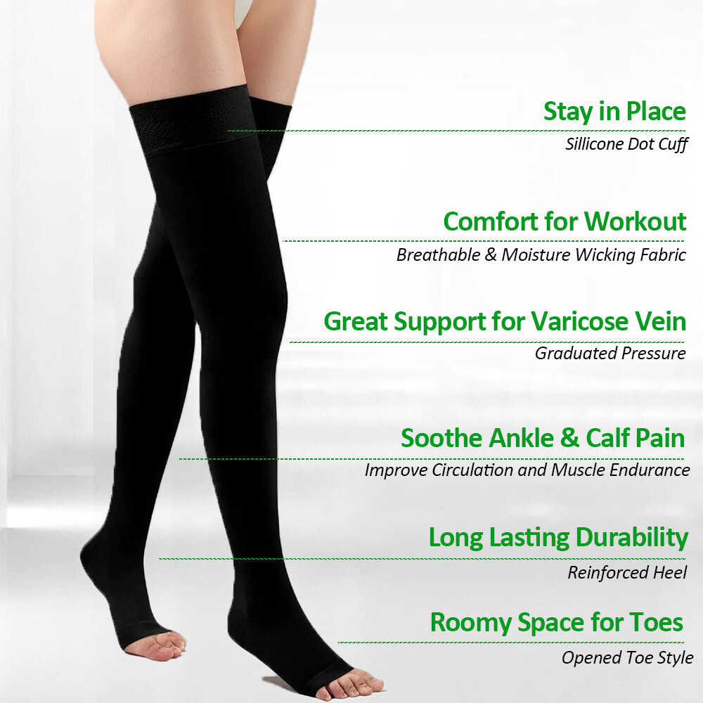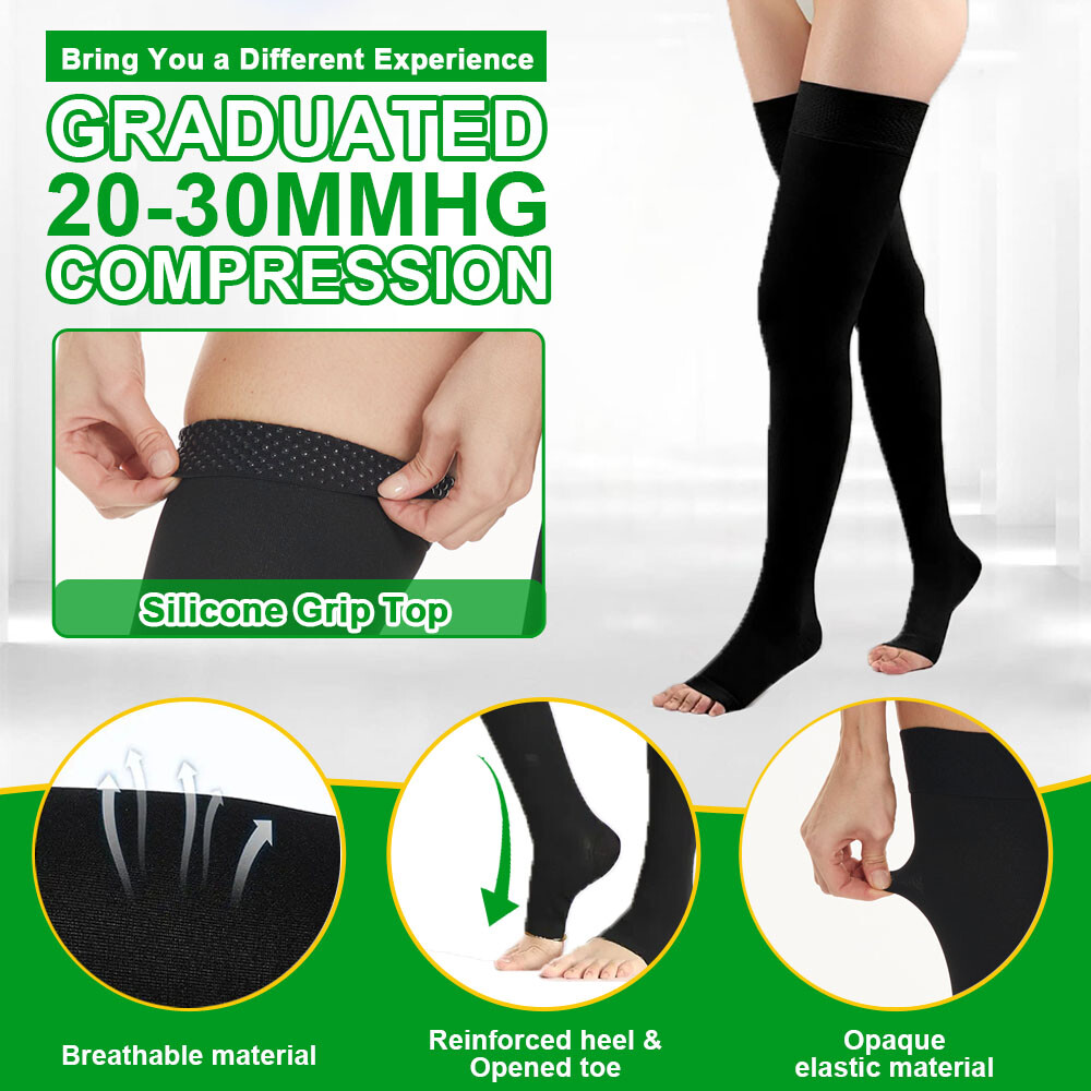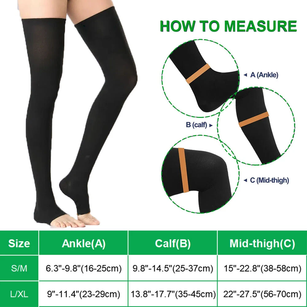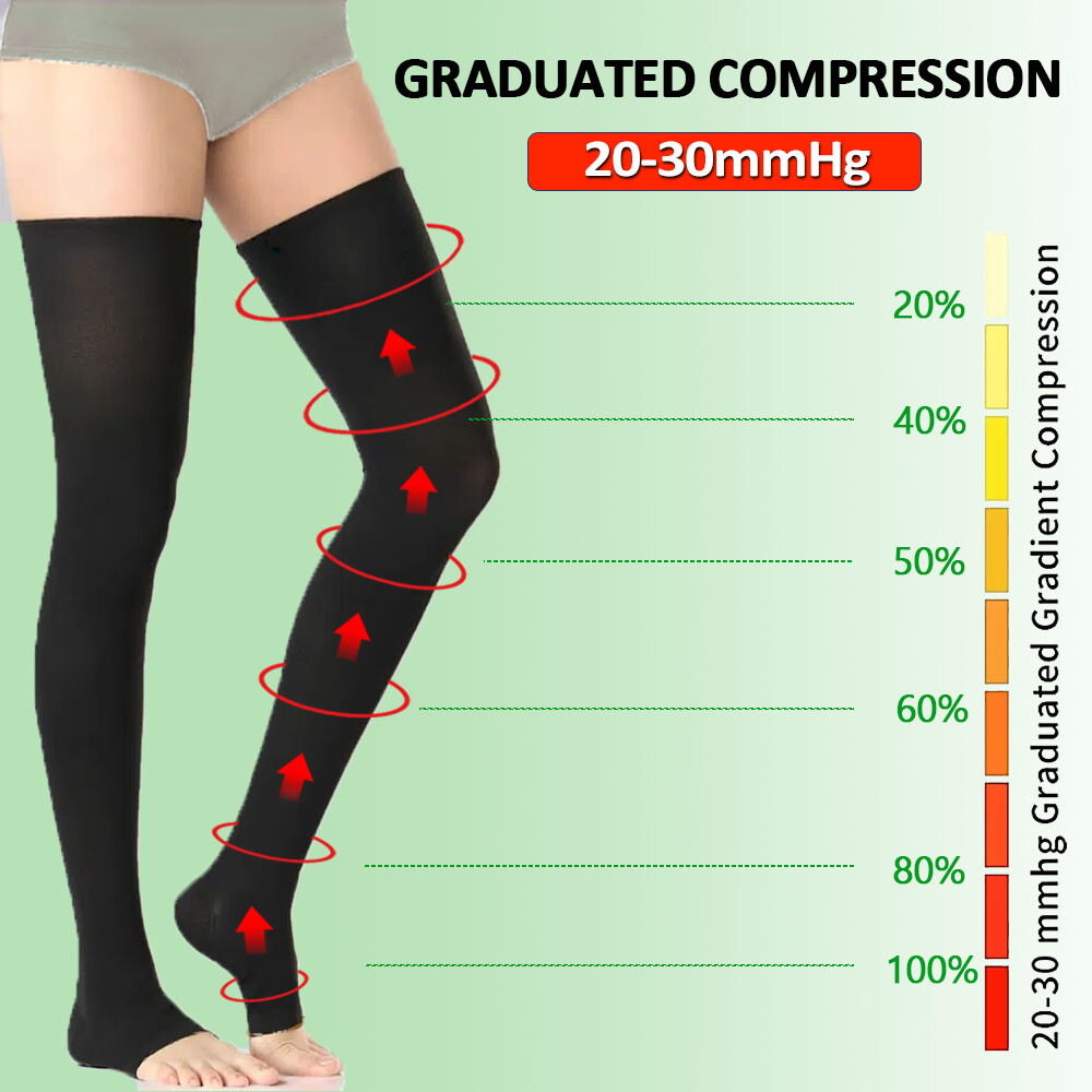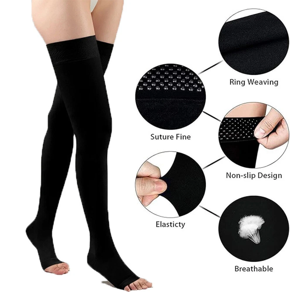 Open Toe Thigh High Compression Socks for Swelling Relief & Leg Fatigue Support
