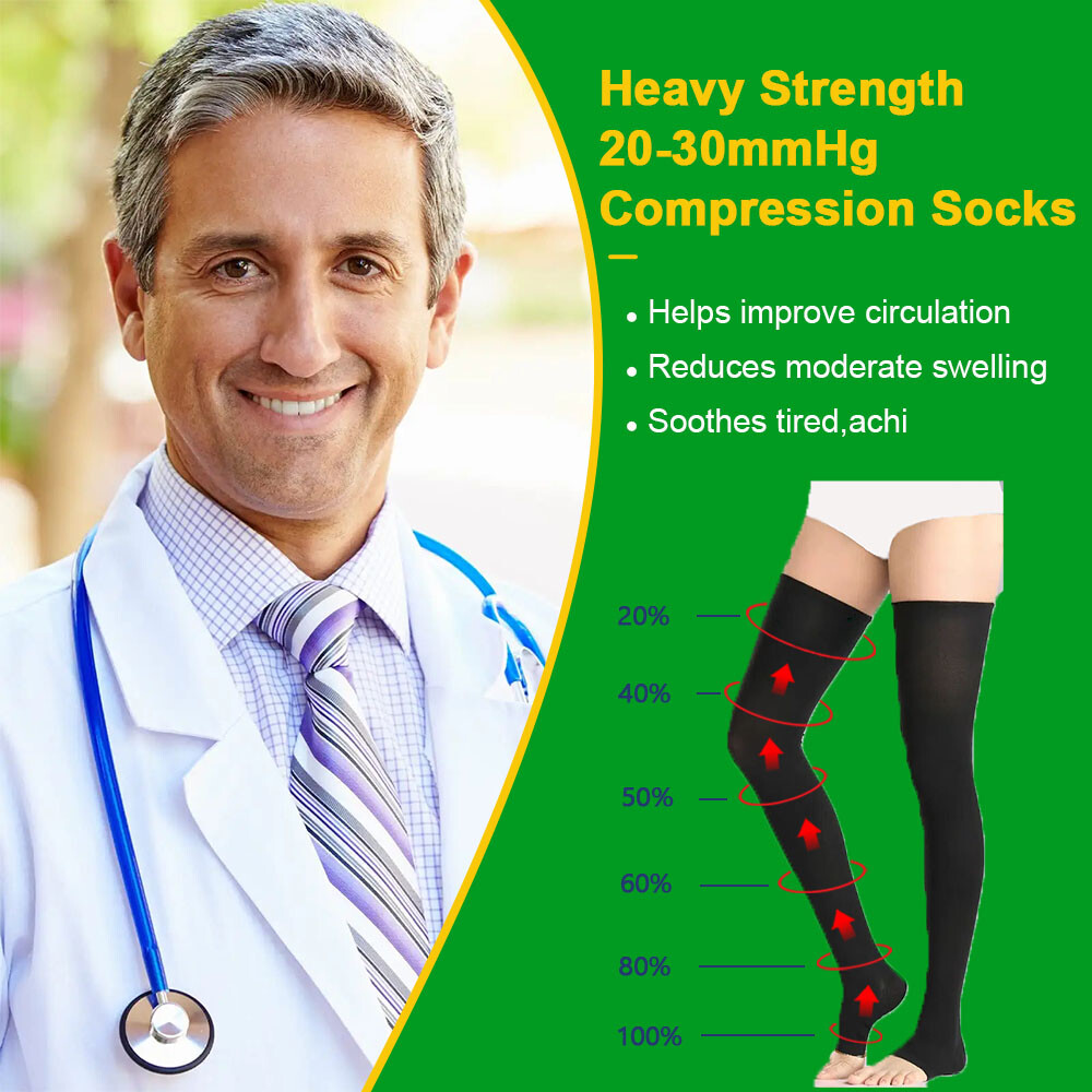 $ 8.9720-30mmHg Thigh High Compression Socks Open Toe Medical Circulation Women&Men