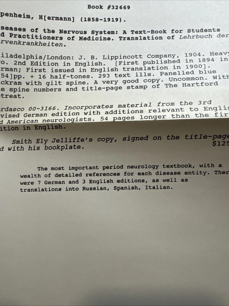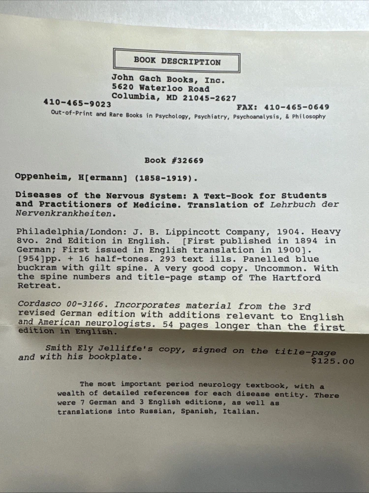 Oppenheim's Diseases of the Nervous System 1904 - Smith Ely Jelliffe Ex Lib Rare