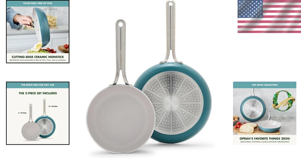 Oprah’s Favorite 2-Piece Frypan Set: Deep Teal Nonstick Skillets, 8" & 10" ‹ › ‹ › ‹ › ‹ › ‹ › ‹ › ‹ › ‹ › ‹ › ‹ › ‹ › ‹ › Oprah’s Favorite 2-Piece Frypan Set Color: Deep Teal Sizes: 8" & 10" Nonstick Skillets Elite Features: Reinforced with Diamonds: Our original diamond-infused nonstick coating ensures remarkable durability and effortless cleanup. Toxin-Free: The Thermolon healthy ceramic nonstick coating is free of PFAS, PFOA, lead, and cadmium. Quick-Heating Aluminum: Heavy-duty aluminum provides extreme strength with quick and uniform heating, ensuring your meals are cooked to perfection. Induction Ready: The innovative induction base ensures uniform heat distribution across all cooktops, including induction, gas, electric, halogen, and ceramic. Built for Oven Cooking: Oven and broiler safe up to 350°F, perfect for versatile cooking techniques. Ergonomic Handles: Riveted stainless steel handles provide a sturdy and comfortable grip. Dishwasher Safe: Easy to clean for a hassle-free experience, allowing you to enjoy cooking without the stress of cleanup. Why Choose Our Frypan Set? Transform your culinary adventures with Oprah’s Favorite 2-Piece Frypan Set. Experience the joy of cooking with our Thermolon healthy ceramic nonstick coating, which incorporates diamond-enhanced layers for exceptional performance. Crafted from heavy-gauge aluminum, these skillets not only promise durability but deliver outstanding heat conduction for even cooking. Designed for versatility, this set is compatible with all stovetops, including induction, and is oven safe up to 350°F, making it ideal for a variety of cooking methods. Plus, the ergonomic riveted handles provide maximum comfort and control while cooking. Make every meal a show-stopping success with this gorgeous Deep Teal collection, and watch as your culinary skills shine! Simplify your kitchen experience with dishwasher-safe convenience and durable design that make cleanup a breeze. Elevate your cooking today with this essential collection! Shipping Free & Fast Shipping - We offer free shipping to most of the USA with a normal delivery time of 3-7 days. However, due to the current situation, additional delivery time (up to 3 weeks) may be required for some items. Alternative Carriers - We may use alternative carriers (e.g. USPS, FedEx, UPS, etc.) to ensure your package arrives safely and on time. Due to the use of multiple carriers, we are unable to provide a tracking number automatically. Handling Time - Orders are processed and shipped within 1-2 business days of receiving cleared payment. Shipping Restrictions - Shipping to Alaska, Hawaii, Puerto Rico, Guam, and other US territories may incur shipping charges or delivery restrictions. Please contact us before ordering, or your order can be refunded/cancelled. State Restrictions - There may be restrictions based on your state of purchase. For example, certain items may not be shipped to California due to state regulations. Contact for Tracking Updates - If you require tracking updates or have any concerns about the delivery of your order, please feel free to contact us, and we will be happy to assist you. Return 30-Day Hassle-Free Returns - We want you to be completely satisfied with your purchase. If you are not, you can return the item within 30 days of receiving it for a full refund or exchange. Easy Return Process - To start a return, simply contact us and we will provide you with a prepaid return shipping label and detailed instructions. Restocking Fee - There are no restocking fees for returns. However, the buyer is responsible for return shipping costs if the return is not due to a seller's error. Refund Processing Time - Refunds will be processed within 5 business days of receiving the returned item in its original condition. Payment We accept all major credit cards, PayPal, and Apple Pay for your convenience. Your payment information is secure and encrypted to ensure a safe and seamless transaction. Please complete your payment within 3 days of purchase to avoid any delays in shipping. Feedback Your feedback is extremely important to us. We strive to provide the best products and customer service possible. If you are satisfied with your purchase, please take a moment to leave us a positive review. If you have any concerns or issues with your order, please contact us before leaving negative feedback. We are committed to resolving any problems and ensuring your satisfaction. Contact Us If you have any questions or concerns, please feel free to reach out to our customer support team. You can contact us through the eBay messaging system. We are available Monday to Friday, 9:00 am to 5:00 pm EST, and we will do our best to respond to your inquiry within 24 hours. Buy it now and enjoy a pleasant shopping experience! UPC: Not Set Unit Quantity: Two-Piece Stove Type Compatibility: Electric,Gas,Induction,Halogen,Ceramic Set Includes: Frying Pan,Lid Material: Aluminum,Aluminum Body,Stainless Steel Handles Features: Dishwasher Safe,Non-Stick,Oven-Safe,Quick Even Heating,Ergonomic Handles Type of Oven: Electric,Gas,Induction,Microwave Oven,Pizza Oven,Steam Oven Brand: Unbranded Type: Frying Pan Surface Coating: Ceramic Item Diameter: 10 in Color: Deep Teal Item Width: 10 in Item Length: 10 in MPN: Not Set Shape: Round Item Height: 10 in Country/Region of Manufacture: Not Set Item Depth: 2 in Manufacturer Warranty: Not Set Item Weight: 3 lb Number of Items in Set: Two-Piece Model: Not Set Heat Resistance: 350°F Unit Type: lb