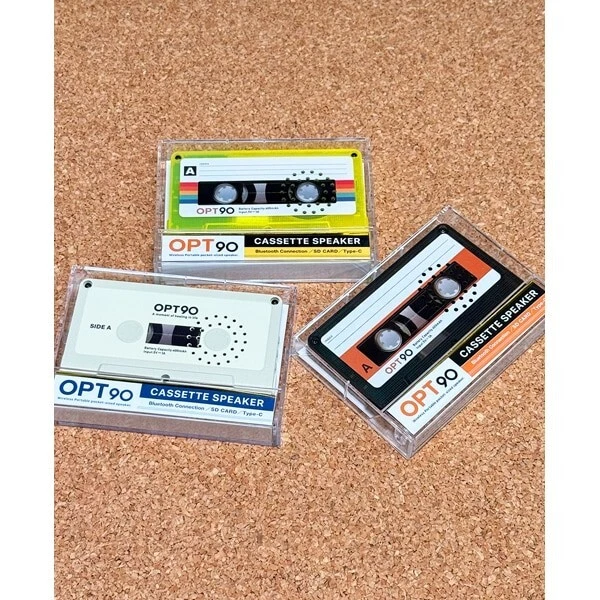 Opt! Opt90 Cassette Tape-Type Speaker Bluetooth Portable Speaker Clear Black Description About This Items A retro and stylish cassette tape-type Bluetooth speaker has just arrived! It also supports SD cards, allowing you to enjoy it like an old mixtape♪ Lightweight and compact, the storage case doubles as a stand. When you close the lid, the sound quality changes, giving you the ability to adjust the sound based on how you use it. Retro and Stylish Speaker This Bluetooth speaker is designed to resemble the cassette tapes that were hugely popular in the 80s and 90s, combining retro aesthetics with modern functionality. SD Card Support You can insert an SD card and enjoy music just like an old mixtape. Note: Only MP3 files on the micro SD card are supported. Storage Case Doubles as a Stand Lightweight and compact, the storage case also serves as a stand. When you close the lid, the sound quality changes, allowing you to adjust it based on how you use it. Important Notes This product is not a cassette tape. It is a Bluetooth speaker inspired by cassette tapes. Speaker Type: Portable Battery Capacity: 400mAh Battery Life: 6 hours Charging Time: 2 hours Bluetooth Version: Bluetooth 5.3 NFC Function: Not supported Dimensions Width: 100mm (Main body) / 110mm (Case) Height: 63mm (Main body) / 77mm (Case) Depth: 12mm (Main body) / 19mm (Case) Weight: 80g (Including dedicated case) Color: Yellow Other Specifications Main Body Material: ABS resin, Iron Size: Approx. 100×63×12mm Weight: Approx. 80g (Including dedicated case) Bluetooth Version: 5.3 Battery Capacity: 400mAh (Lithium-ion battery) Rated Voltage: 5V = 1A Power Consumption: 2W Continuous Playback Time: Approx. 6 hours (at maximum volume) Charging Time: Approx. 2 hours Certification: Technical Standards Conformance Certification: R219-239467 Shipping [Economy Shipping] No Tracking 2-4 Weeks [Expedited Shipping] FedEx (+Tracking Number) It arrives in 2 days to 1 week. Please note: The lead time for shipping depends on flight schedules and customs clearance procedures for each country. Due to a reduction in airplane availability, shipping times may be longer than usual. International Buyers: Please note that import duties, taxes, and charges are not included in the item price or shipping cost. These charges are the buyer?s responsibility. Prior to bidding or buying, please check with your country?s customs office to determine what these additional costs will be. We do not mark merchandise value below its actual value or mark items as gifts, as this is prohibited by Japan and international government regulations, as well as eBay rules. About Importer's Obligation Import duties, taxes, and charges are not included in the item price or shipping cost. These charges are the buyer's responsibility. Please check with your country's customs office to determine what these additional costs will be prior to bidding or buying. Thank you for your understanding.